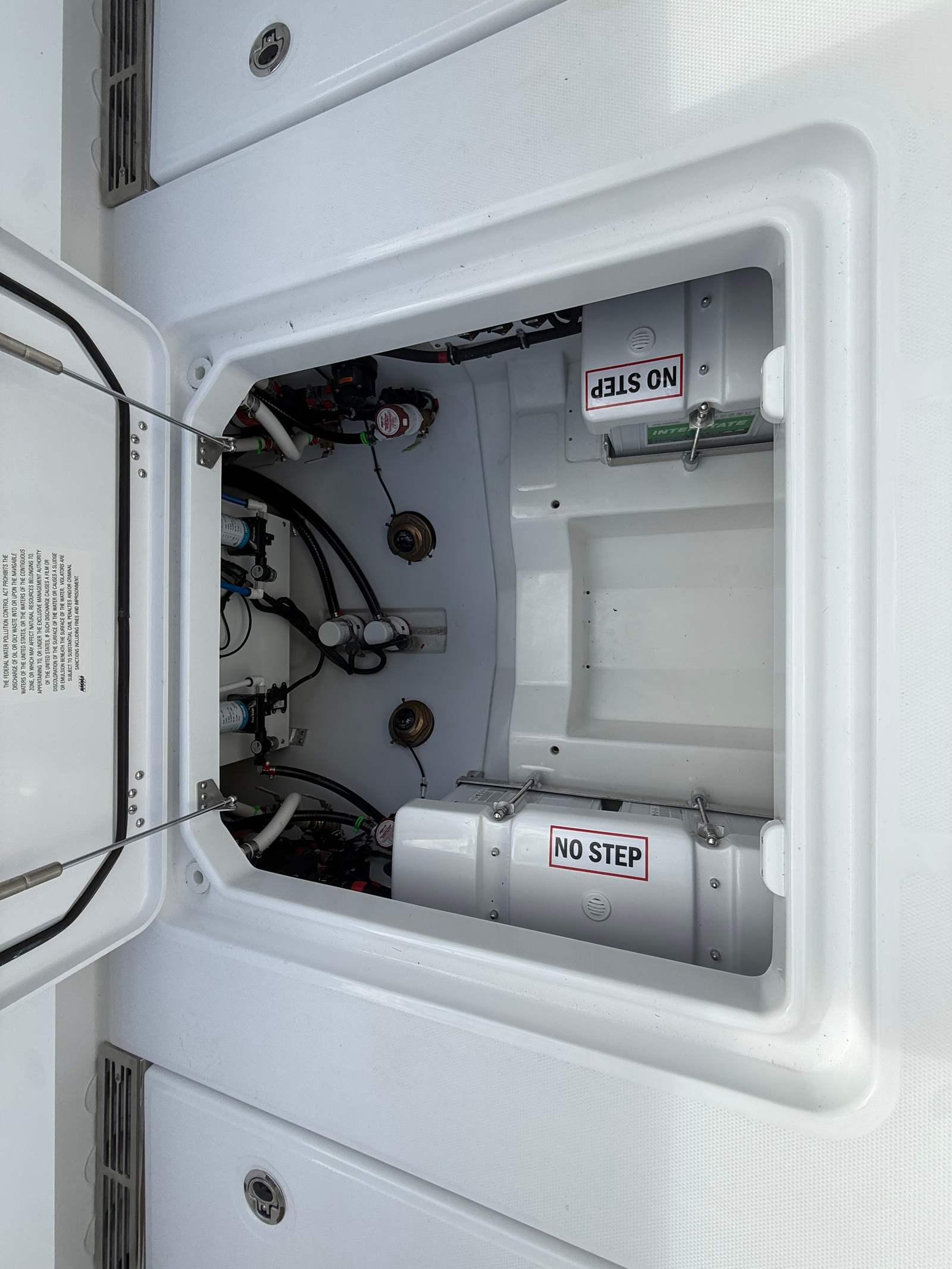 At the heart of the Everglades 315 CC are twin Mercury 400hp V10 engines, delivering a combined 800 horsepower for exhilarating performance and reliability. These state-of-the-art engines are engineered for smooth acceleration, impressive top speeds, and efficient cruising, ensuring that every outing is both thrilling and enjoyable. Whether you’re chasing the horizon or navigating tight waterways, the responsive handling and robust power of this center console boat make it a joy to captain. The advanced engine technology also contributes to fuel efficiency, allowing you to spend more time on the water and less time refueling.