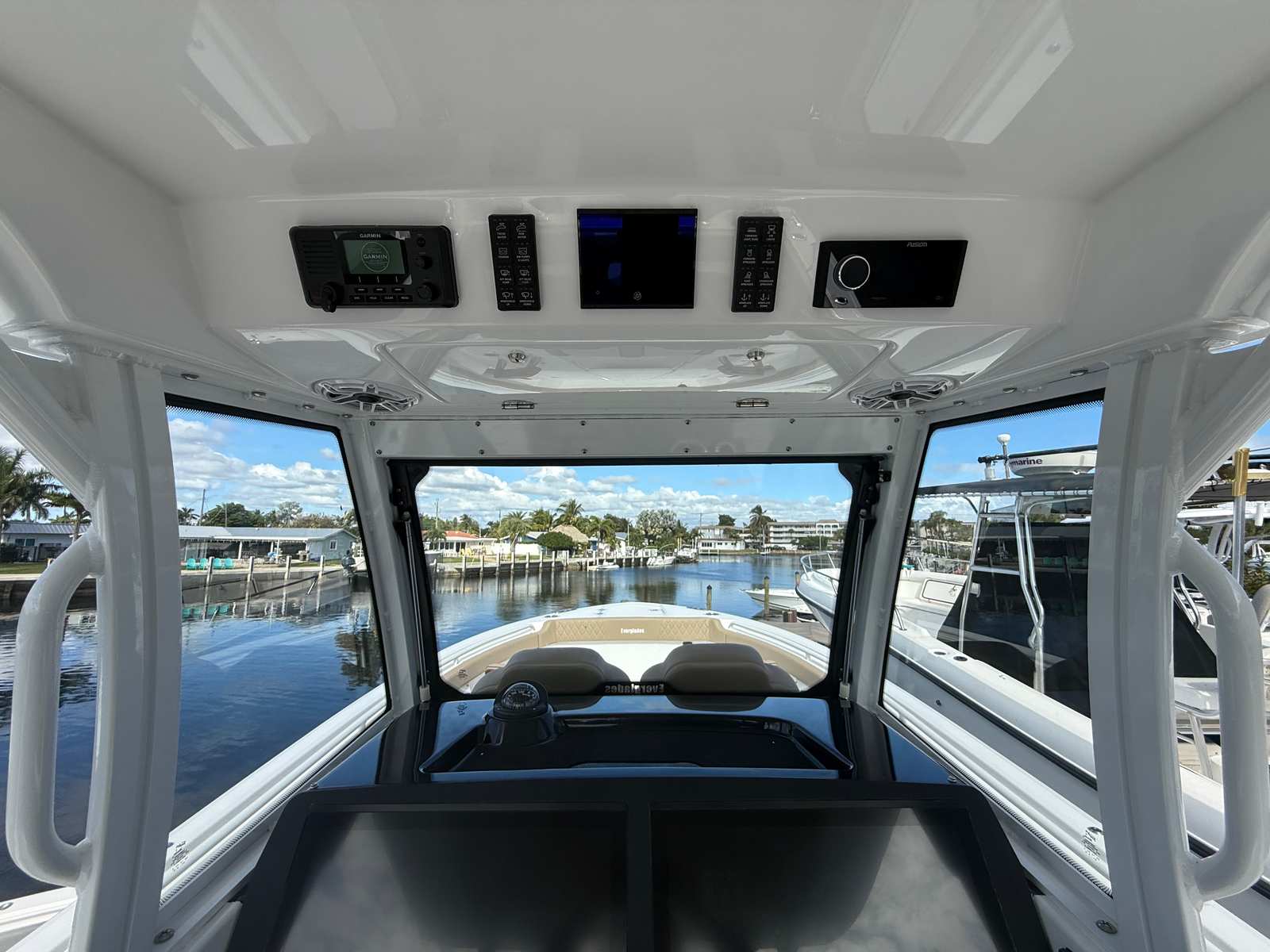 The Everglades 315 CC is packed with premium features that enhance both its functionality and comfort. The full hull color option not only adds to the boat’s visual appeal but also provides an extra layer of protection against the elements. The Coconut Tan Accent upholstery is complemented by a matching tan canvas package, creating a cohesive and stylish look throughout the vessel. For anglers, the fishing package and trolling motor pre-rig offer everything needed for a successful day on the water, while the chiller plate for the mezzanine/rigging station cooler tub ensures that your catch or refreshments stay perfectly chilled. The carbon fiber steering wheel upgrade adds a sporty touch and superior grip, enhancing the overall driving experience.