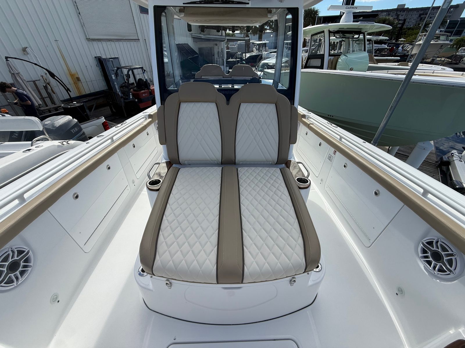 The 2026 Everglades 315 CC measures an impressive 33.75 feet in length, offering ample space for both relaxation and activity. This new center console boat is meticulously crafted to deliver a seamless blend of comfort and functionality, making it ideal for a wide range of on-water pursuits. The sleek hull, finished in a classic White Gel color with a full hull color upgrade, gives the boat a modern and sophisticated appearance that is sure to turn heads at the marina or out on open water. The Coconut Tan Accent upholstery adds a touch of elegance and warmth, creating an inviting atmosphere for all aboard.