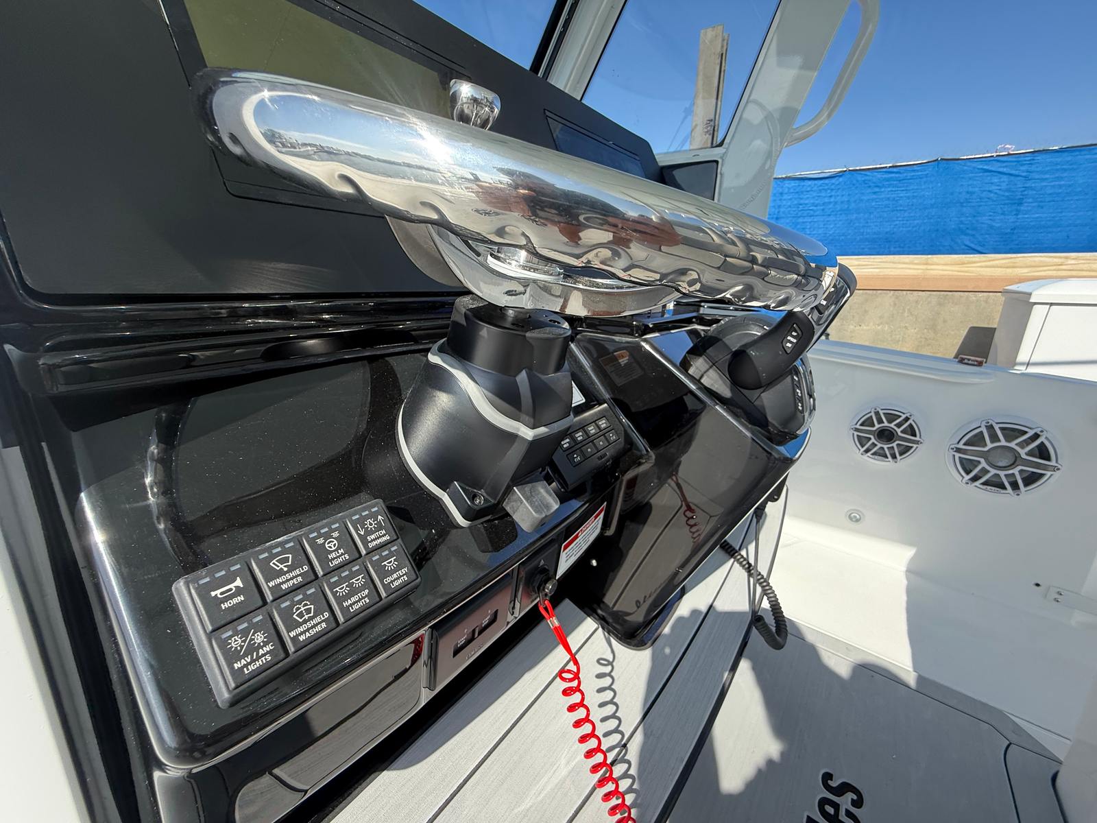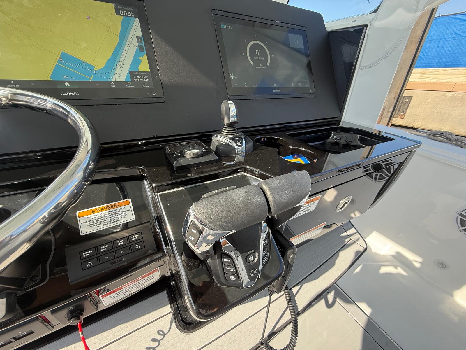 Power and precision are at the heart of the Everglades 335 CC. Equipped with twin Yamaha F450 engines in a stunning white finish, this center console boat boasts a combined 900 horsepower, ensuring exhilarating speed and responsive handling. The advanced Auto Pilot and Joystick for Yamaha EX at the main station provide effortless control and navigation, making docking and maneuvering a breeze even in challenging conditions. Whether you are cruising along the coastline or heading offshore for a day of fishing, the Everglades 335 CC delivers exceptional performance and reliability.