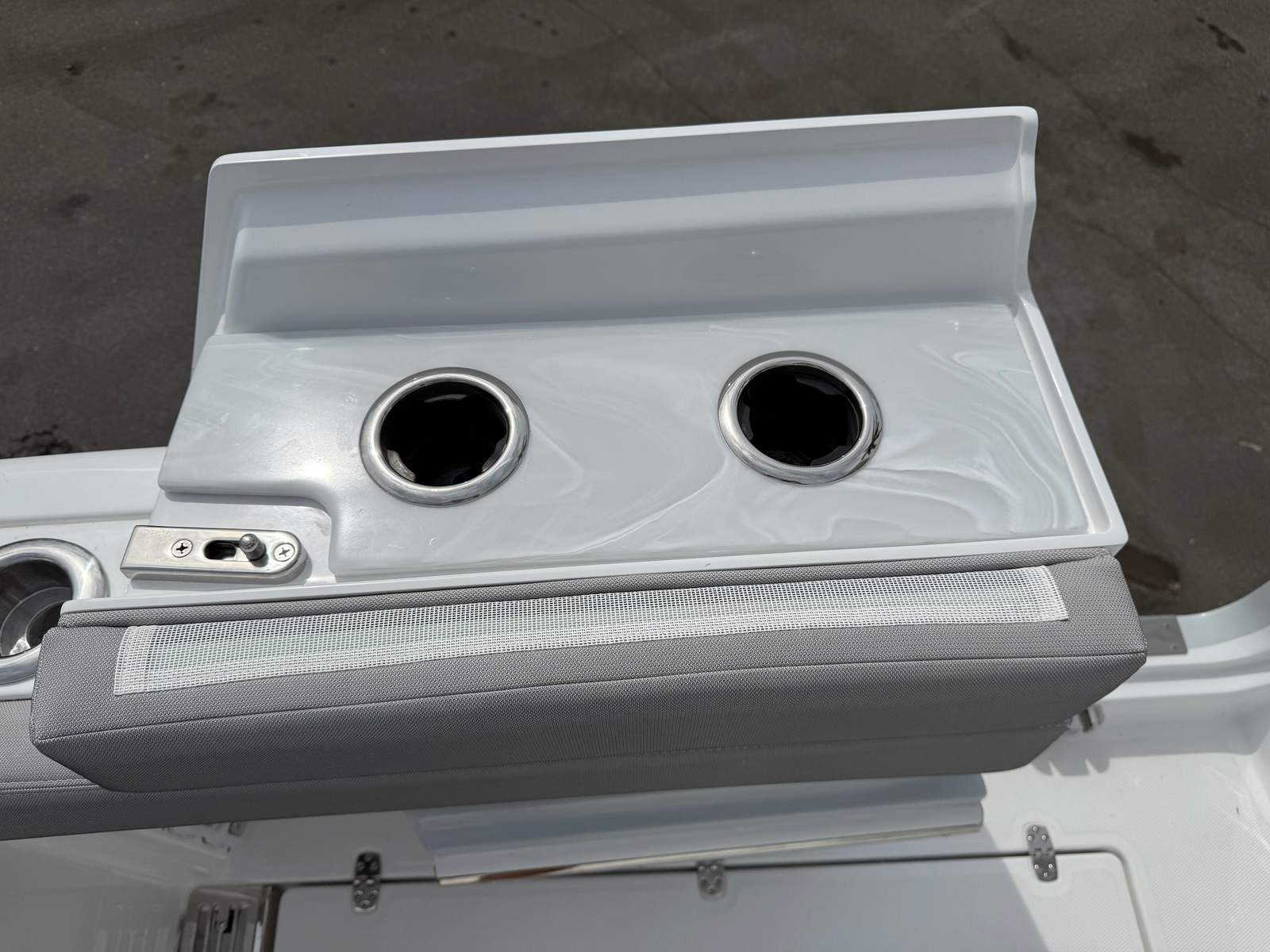 - **Carbon Fiber Steering Wheel Upgrade**: Enjoy a lightweight and durable steering experience with the premium carbon fiber steering wheel. - **Electrically Actuated Skylight and Retractable Cockpit Shade**: These features provide optimal lighting and shade control, allowing you to customize your comfort effortlessly. - **Hardtop Mounted and Electrically Actuated**: The hardtop is equipped with a Mediterranean bow shade and a triple low-profile light bar, ensuring both functionality and style. - **Fishing Package**: Tailored for fishing enthusiasts, this package includes essential gear and storage solutions to make your fishing trips more enjoyable. - **Electrically Actuated Valves on Thru Hulls**: Seamlessly manage your waste system and generator with the integrated valves, enhancing convenience and efficiency. - **Tow Package with Heavy-Duty Tow Eye**: Perfect for towing water sports equipment, ensuring you can bring along your favorite gear with ease. - **Upholstery Color Material Package - Sanibel**: The Sanibel upholstery package adds a touch of elegance and comfort to the interior, making every voyage a pleasure.