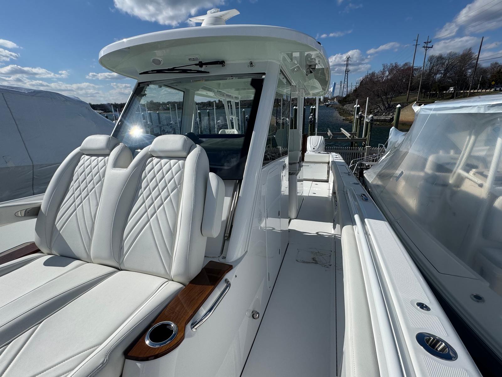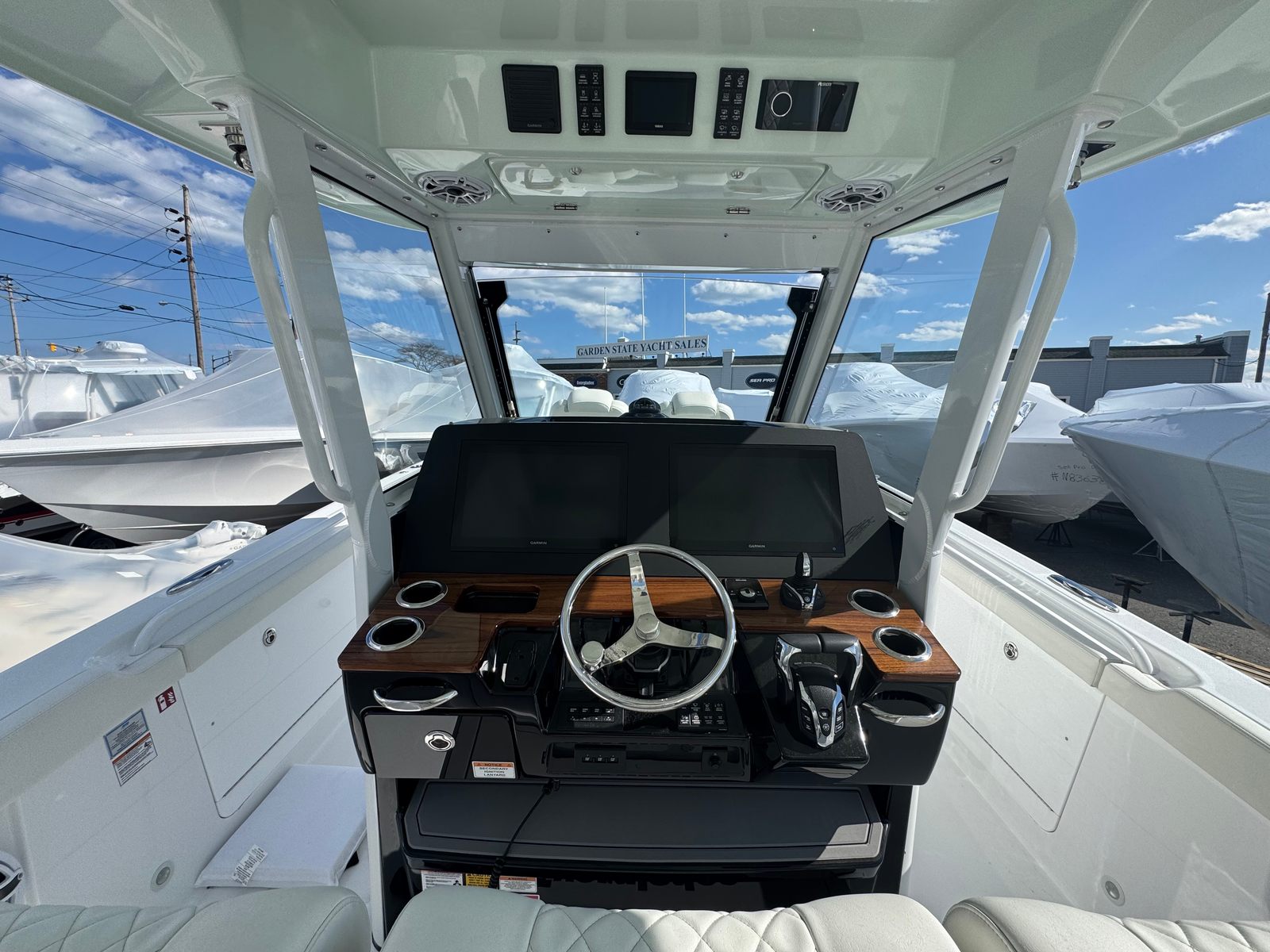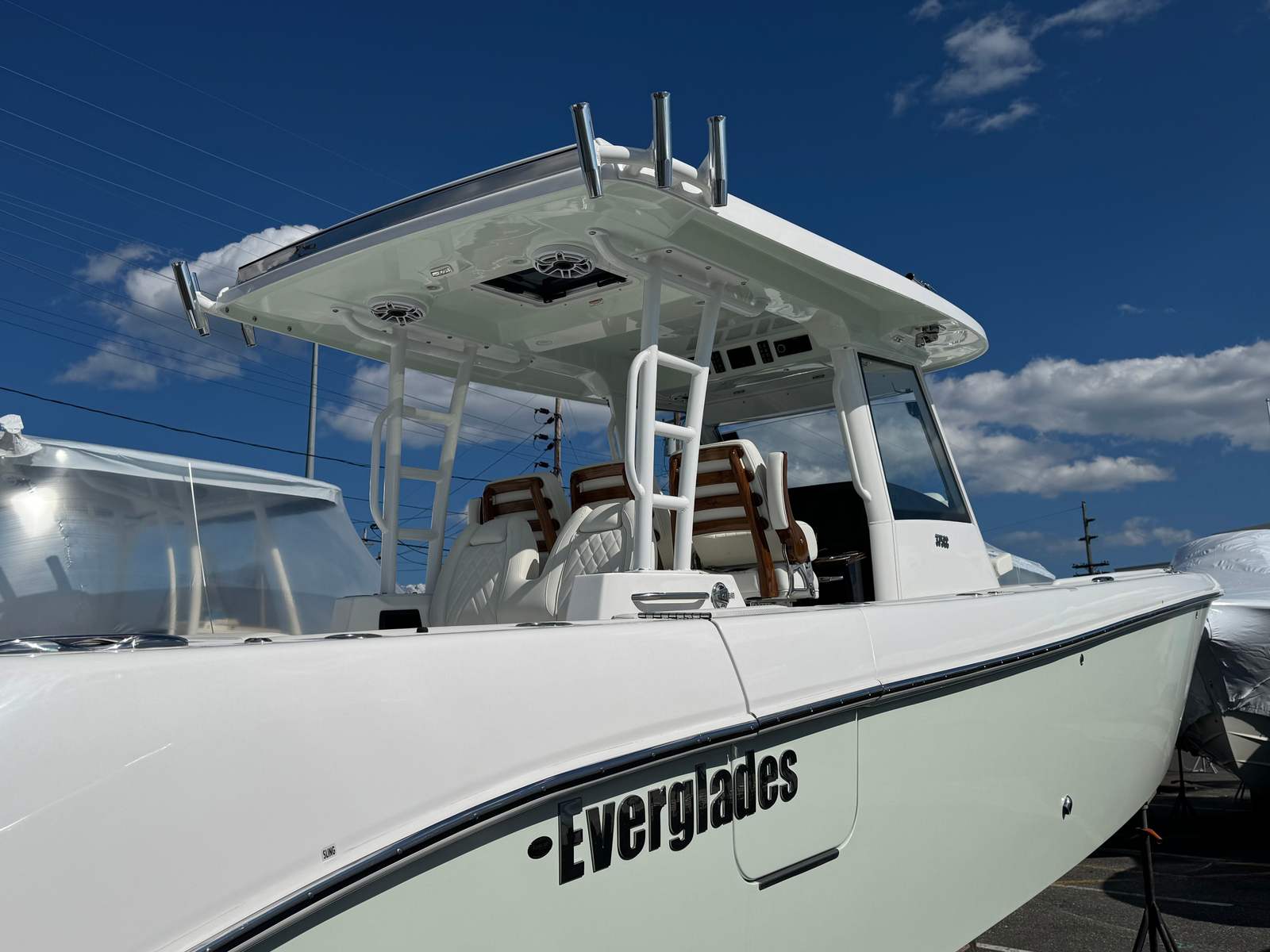The 2026 Everglades 375 CC is a true testament to modern boat engineering and craftsmanship. Measuring just over 40 feet in length, this center console offers ample space for both relaxation and adventure. Its new condition ensures you are getting the latest in marine technology, comfort, and style. The Whisper Green hull color, paired with the matching underside of the hardtop, creates a striking visual impression that is sure to turn heads at the marina or out on open water. The interior cabinet color in Sanibel and solid white upholstery further enhance the boat’s clean, sophisticated aesthetic, making it a standout among Everglades boats for sale.