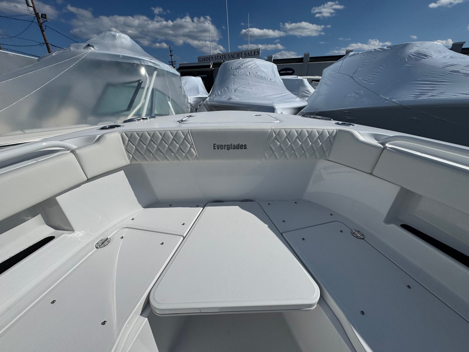 Owning the Everglades 375 CC means embracing a lifestyle of adventure, comfort, and social connection. The spacious layout provides plenty of room for friends and family to spread out, whether you are sunbathing on the bow, relaxing in the shaded cockpit, or enjoying a meal at the mezzanine seating area. The solid white upholstery is not only visually appealing but also easy to maintain, ensuring your boat looks pristine trip after trip.The advanced helm station, featuring autopilot and joystick controls, takes the stress out of navigation and docking, making this center console boat accessible to both seasoned captains and newcomers alike. The thoughtful storage solutions, including dedicated spaces for fishing gear and personal belongings, keep the deck clutter-free and organized, enhancing both safety and enjoyment.