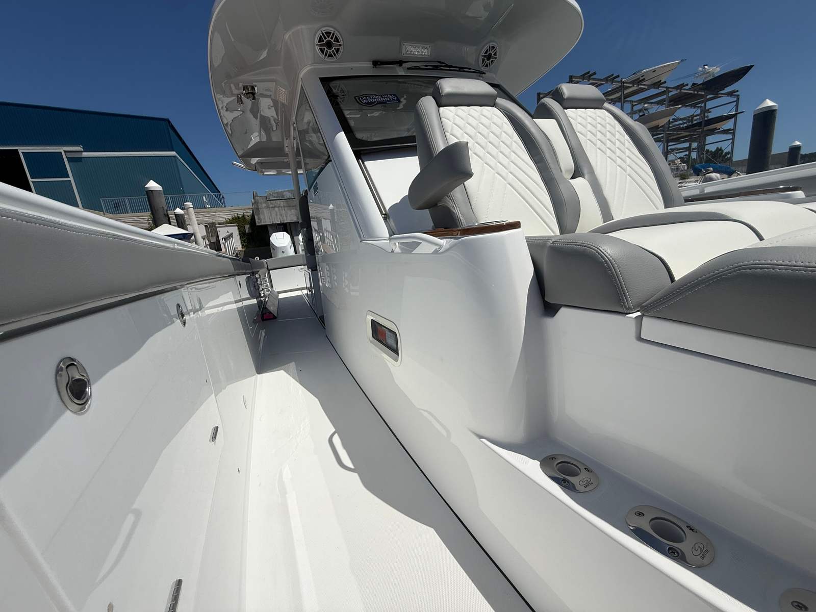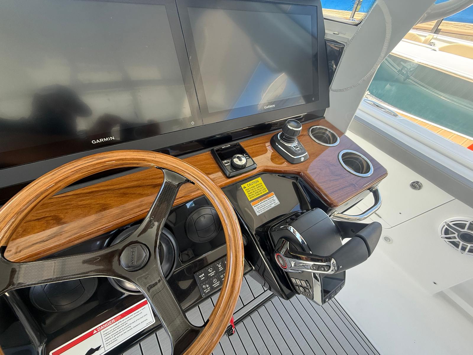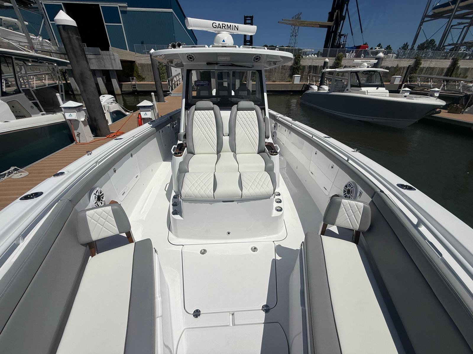 This center console boat for sale is designed with practicality in mind. The joystick and autopilot system make docking and maneuvering in tight spaces a breeze, reducing the stress of busy marinas or crowded anchorages. The engine flushing system streamlines maintenance, helping you spend more time on the water and less time on upkeep.The generous deck space and thoughtful layout provide ample storage for gear, tackle, and personal items, keeping your boating environment organized and clutter-free. The chiller plate ensures your catch or refreshments stay cold throughout the day, while the powerful lighting system enhances safety and visibility during evening excursions.
