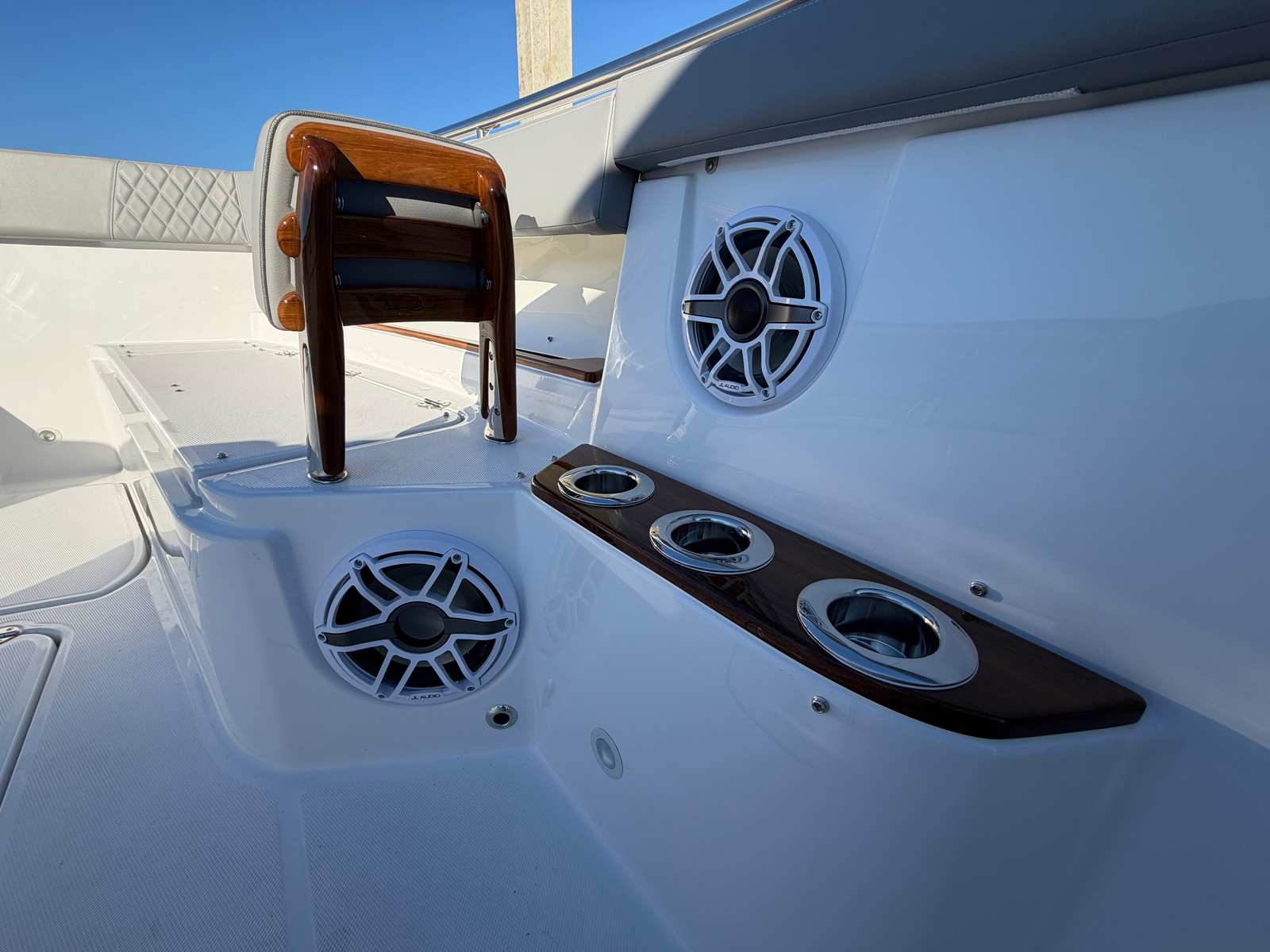 - Teak Accents at fwd lounge, fwd bow seats, and dive doors
