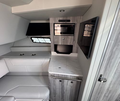 The Formula 380 SSC is loaded with features that elevate every moment on the water. Its spacious layout is designed for both relaxation and entertainment, offering plenty of room for family and friends. The cockpit is thoughtfully arranged to maximize comfort and functionality, with premium seating, ample lounging areas, and intuitive controls that put everything you need within easy reach. The attention to detail in the design ensures that every outing is enjoyable, whether you are hosting a sunset gathering or embarking on a weekend getaway.This cruiser’s innovative design also provides excellent storage solutions, making it easy to stow gear, water toys, and essentials for extended trips. The high-quality materials and finishes throughout the boat reflect Formula’s commitment to luxury and durability, ensuring your investment stands the test of time.