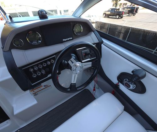 The Four Winns V255 is packed with features that enhance your time on the water. Its spacious bowrider layout provides ample seating for guests, allowing everyone to relax and soak up the sun. The ergonomic helm is designed for intuitive control, giving the captain confidence and ease while navigating. The V255’s 25-foot length offers a perfect balance between maneuverability and space, making it ideal for both intimate gatherings and lively parties.Special features of the Four Winns V255 include a thoughtfully designed cockpit with comfortable seating, a stylish and functional dashboard, and plenty of storage for all your gear. The open bow area invites socializing and sunbathing, while the aft seating is perfect for enjoying the view or preparing for a swim. Every detail is crafted to maximize comfort and convenience, ensuring that every trip is as enjoyable as possible.