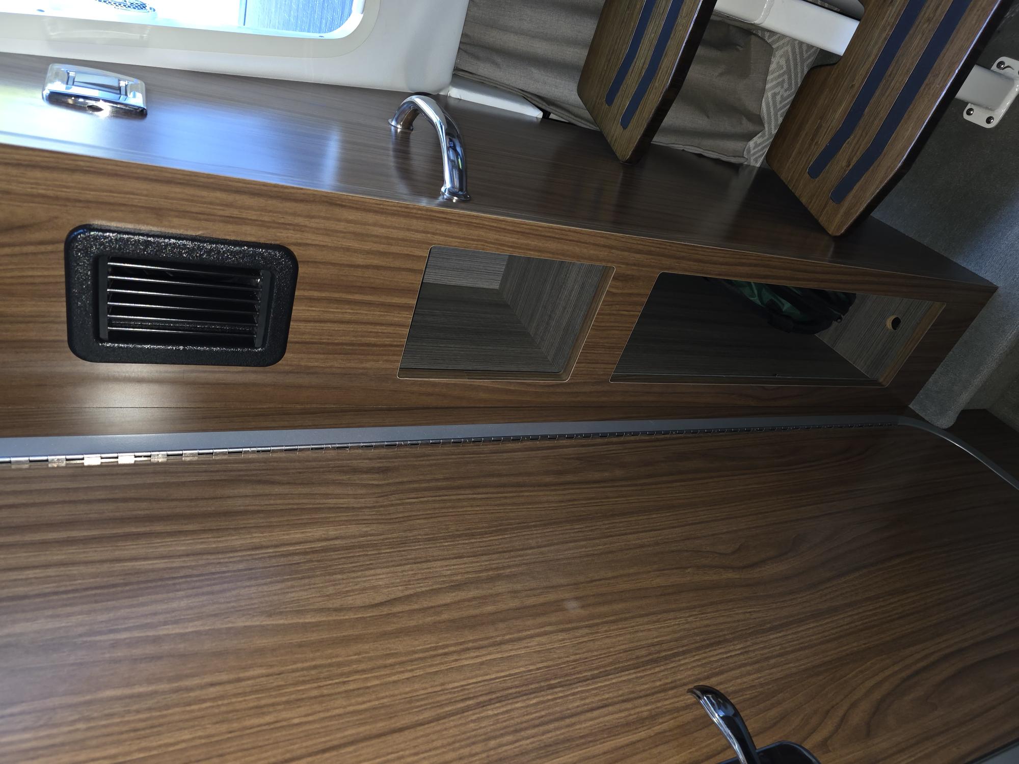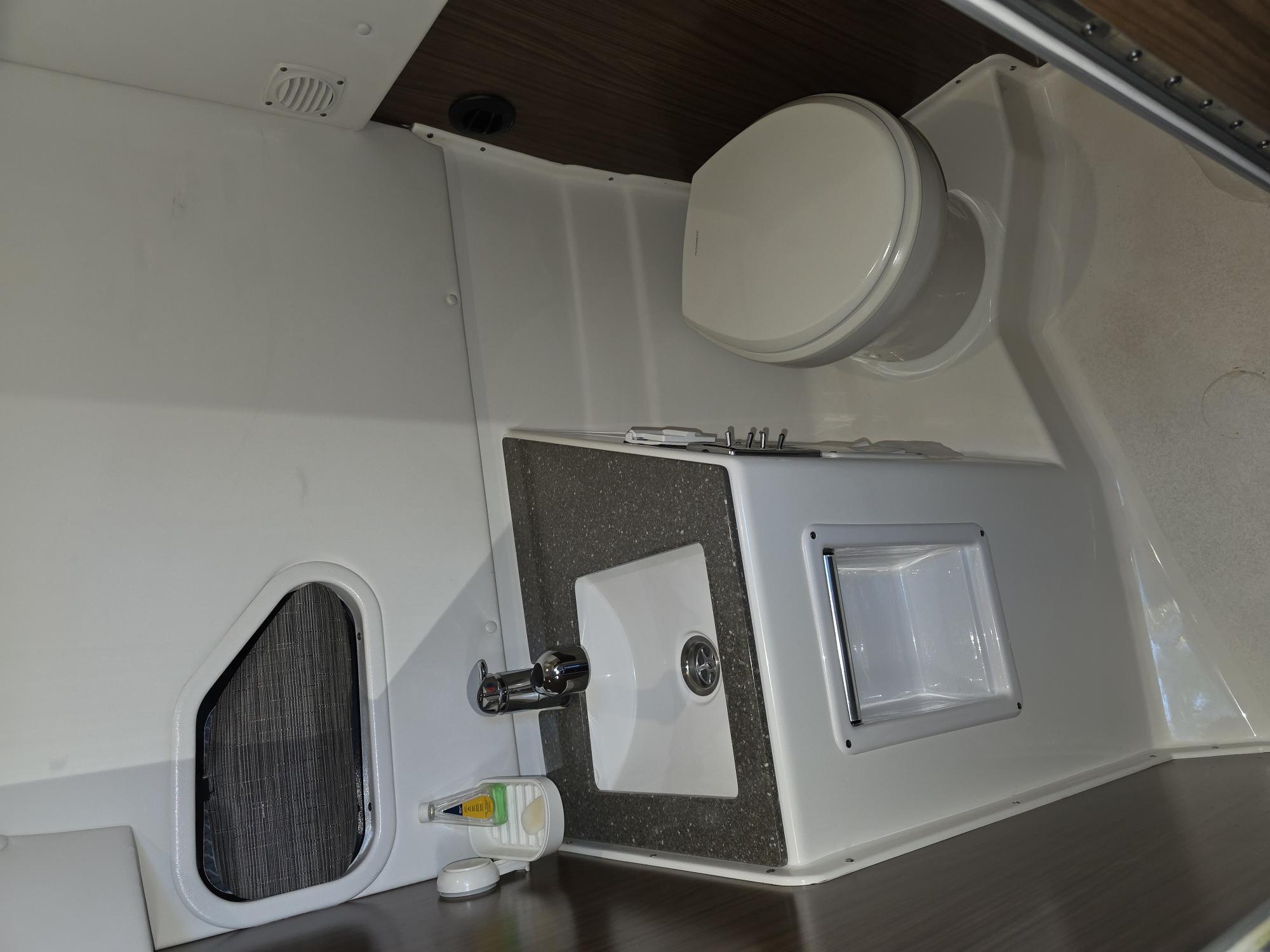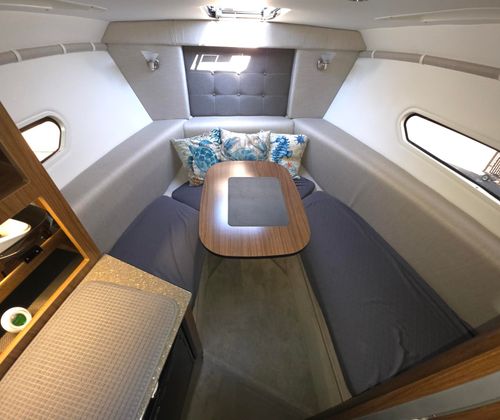 The V255 offers ample cabin space with a convertible V-bunk in the bow and a beam-width aft cabin accommodation. It can sleep up to six people, making it a spacious option for families or groups.