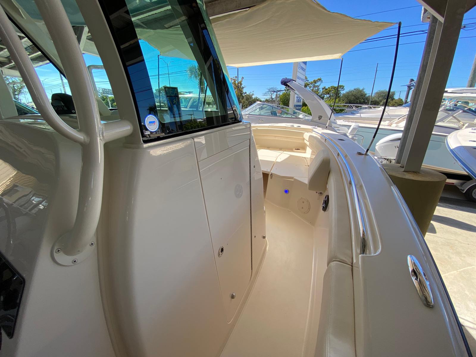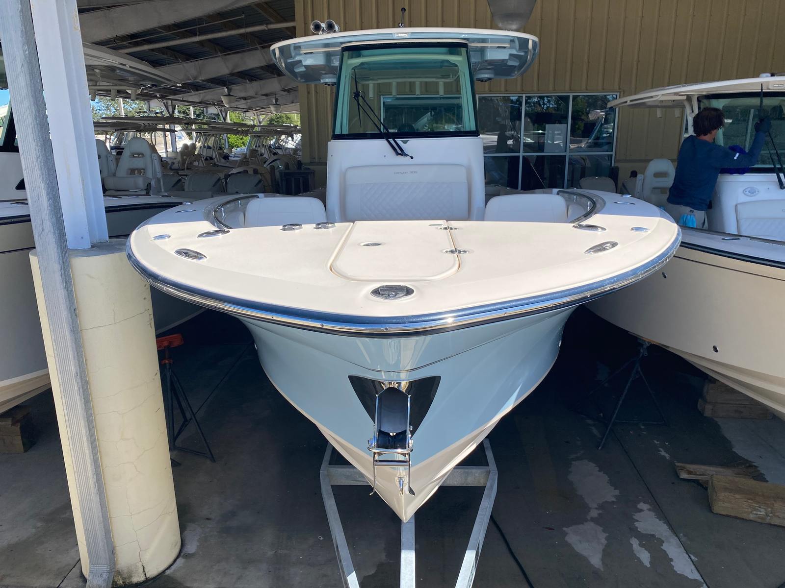 The Grady-White Canyon 306 is loaded with special features that enhance both comfort and functionality. The cast platform insert with cushion provides a versatile space for casting, lounging, or simply enjoying the view. Underwater lights (3X) add a touch of elegance and excitement, illuminating the water beneath and creating a captivating atmosphere for evening cruises or night fishing. The gel coat in celestial blue gives the boat a striking appearance, while the ivory bow shade offers essential sun protection for those relaxing at the bow.For added convenience and luxury, the Canyon 306 features a Jit top underside in celestial, as well as an electric Sure Shade top in oyster, providing adjustable shade and comfort throughout the day. The silver logos and name plate, a special request, add a personalized and sophisticated touch to this already impressive vessel. Every detail has been thoughtfully designed to enhance your boating experience, making the Grady-White Canyon 306 a standout choice among center console boats for sale.