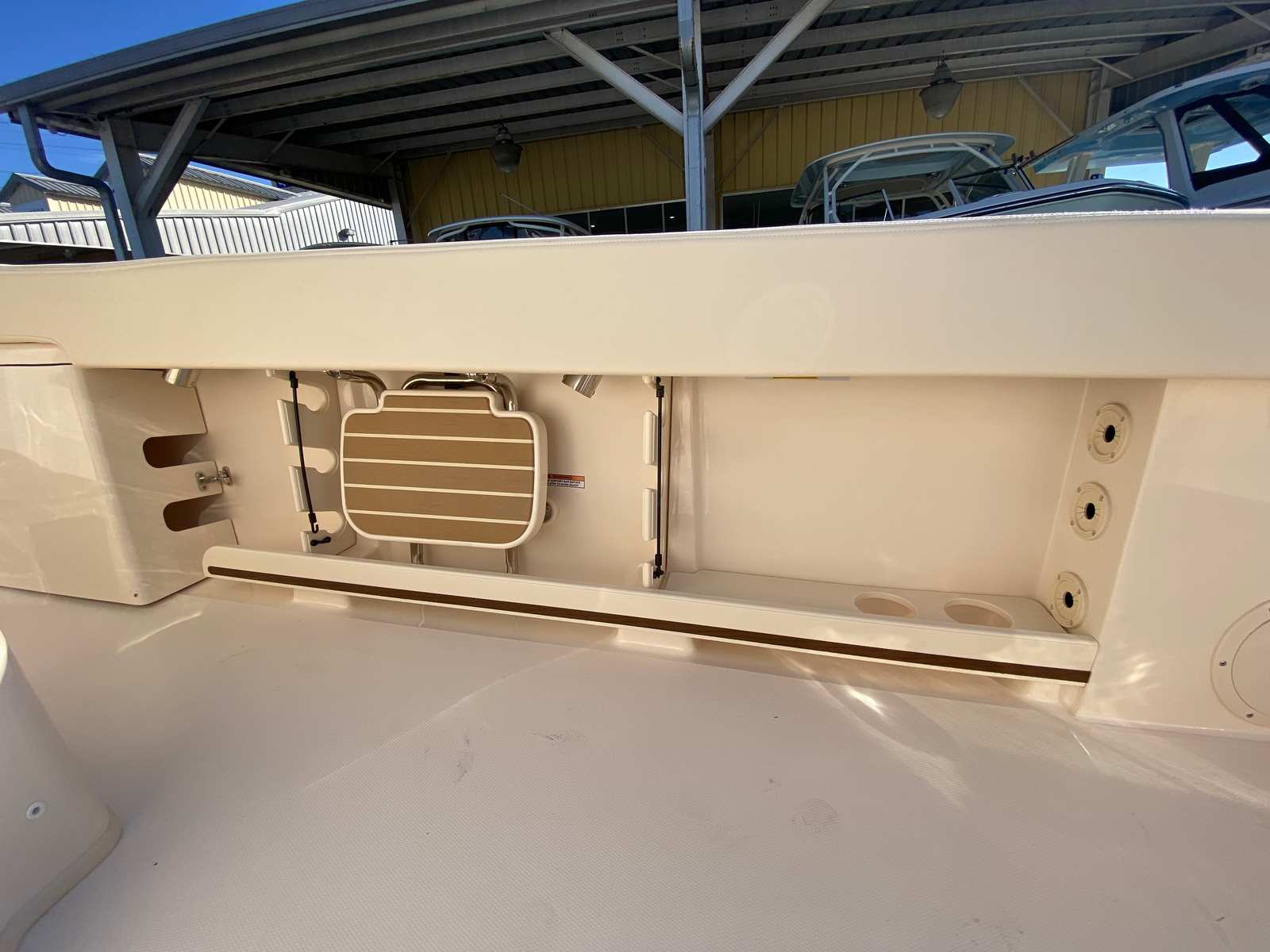 The Canyon 306 is designed with practicality in mind, offering features that make ownership effortless and enjoyable. The spacious deck provides plenty of storage for fishing gear, water toys, and personal items, keeping everything organized and within reach. The dual Yamaha engines not only deliver impressive speed but also offer reliable fuel efficiency, ensuring you can spend more time on the water and less at the fuel dock. Docking is a breeze thanks to the boat’s responsive handling and well-planned layout, making it suitable for both seasoned captains and newcomers alike. The electric Sure Shade top and bow shade offer quick protection from the elements, allowing you to adapt to changing weather conditions with ease.