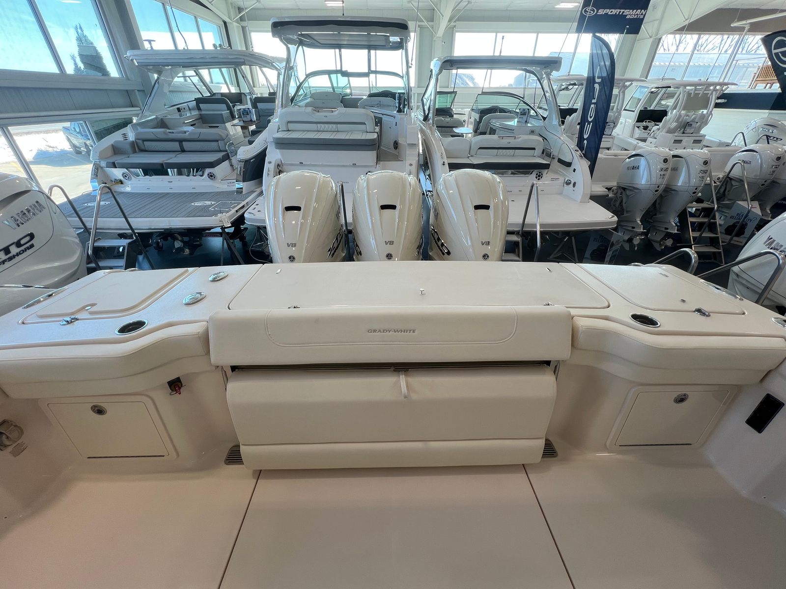 The 2026 Grady-White 386 Canyon is a new center console boat for sale that combines power, luxury, and versatility in one exceptional package. With its triple Yamaha F450 engines, advanced Garmin electronics, motorized bow fiberglass table, and stunning Celestial Blue gel coat, this boat offers unmatched performance and style. Protective coatings and custom touches ensure lasting beauty and easy maintenance, while the spacious layout provides endless opportunities for fun and relaxation. If you’re searching for a Grady-White boat for sale that delivers excitement, comfort, and reliability, the 386 Canyon is your answer. Discover the joy of boating with a vessel that’s built to impress and designed for adventure. Contact your dealer today to learn more about this incredible center console boat and make your dream of owning a Grady-White a reality.