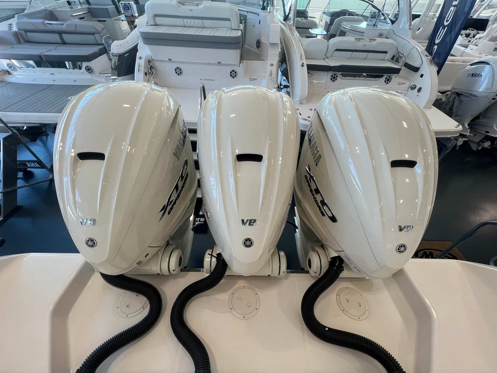 Power and precision define the Grady-White 386 Canyon’s performance. Equipped with three engines, this center console boat boasts a combined horsepower of 1350, thanks to the PreRig Triple Yamaha F450 setup. This configuration delivers exhilarating speed, exceptional handling, and reliable power for offshore adventures. Whether you’re cruising along the coastline or heading out to deeper waters, the triple Yamaha engines ensure smooth acceleration and responsive maneuvering. The advanced engineering of Grady-White guarantees a stable ride, even in challenging conditions, making every journey safe and enjoyable.