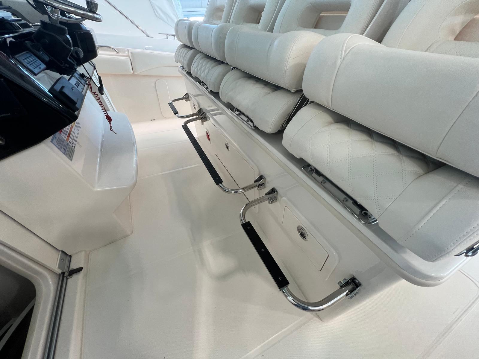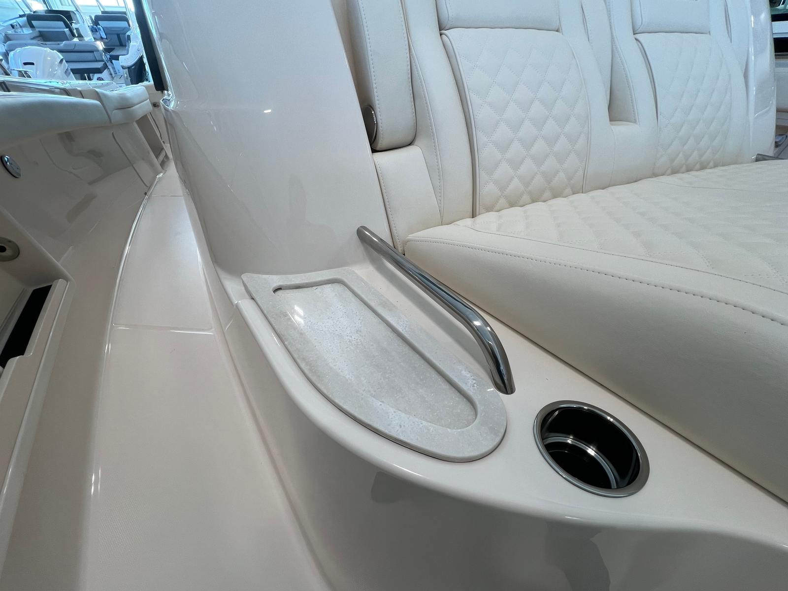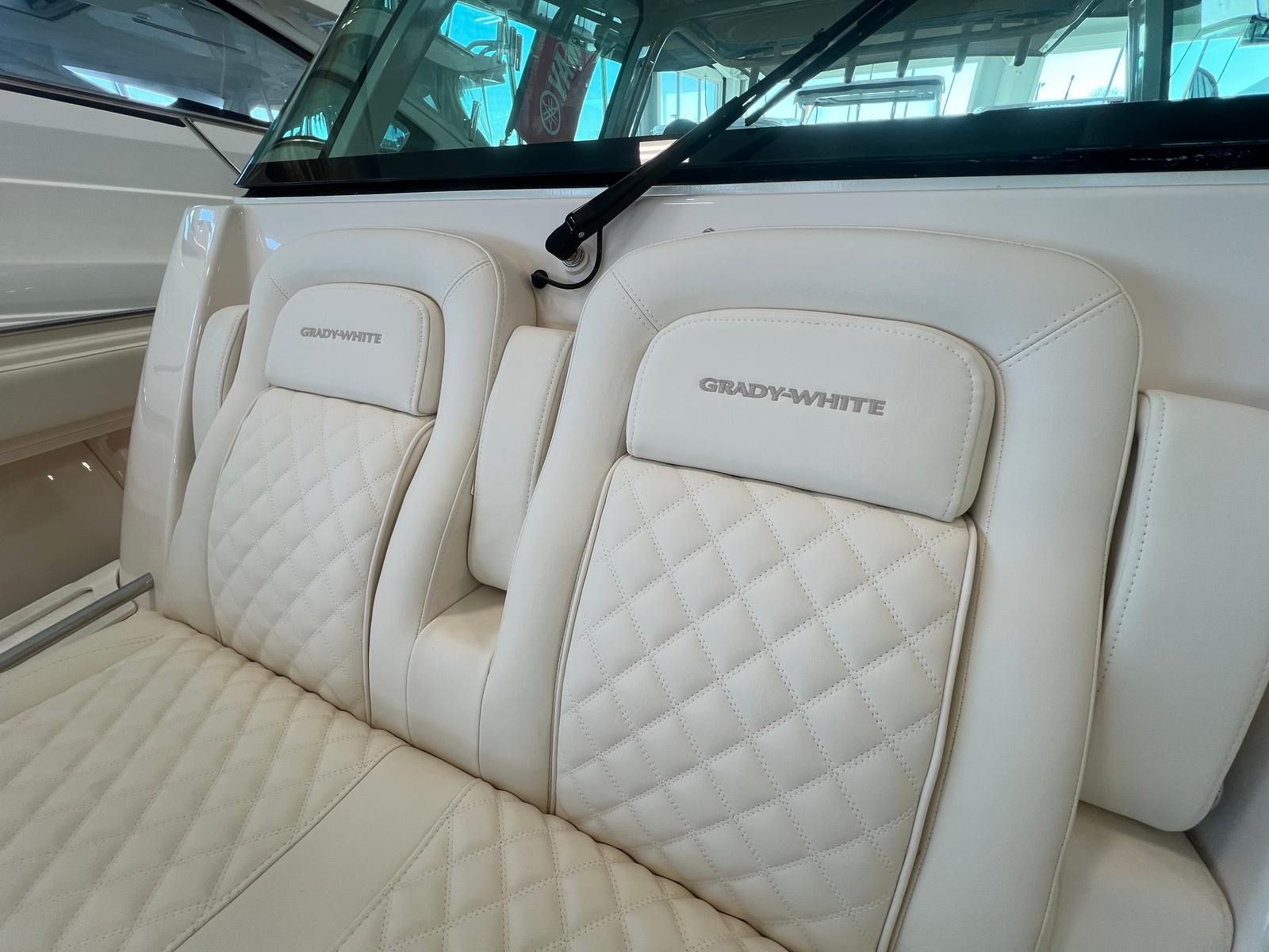 Owning the Grady-White 386 Canyon means embracing a lifestyle of fun, relaxation, and excitement. The spacious layout offers plenty of room for friends and family, making it ideal for social gatherings, sunbathing, or simply unwinding after a day on the water. The motorized bow table transforms the front of the boat into a perfect spot for picnics, cocktails, or planning your next adventure. Advanced navigation and fish-finding technology ensure you’re always in control, whether you’re chasing trophy catches or exploring new destinations. The triple Yamaha engines provide unmatched power and efficiency, allowing you to cover more water and reach your favorite spots faster. The protective coatings keep maintenance to a minimum, so you can spend more time enjoying your boat and less time cleaning. With its modern design and premium finishes, the 386 Canyon is sure to impress guests and create lasting memories every time you set sail.