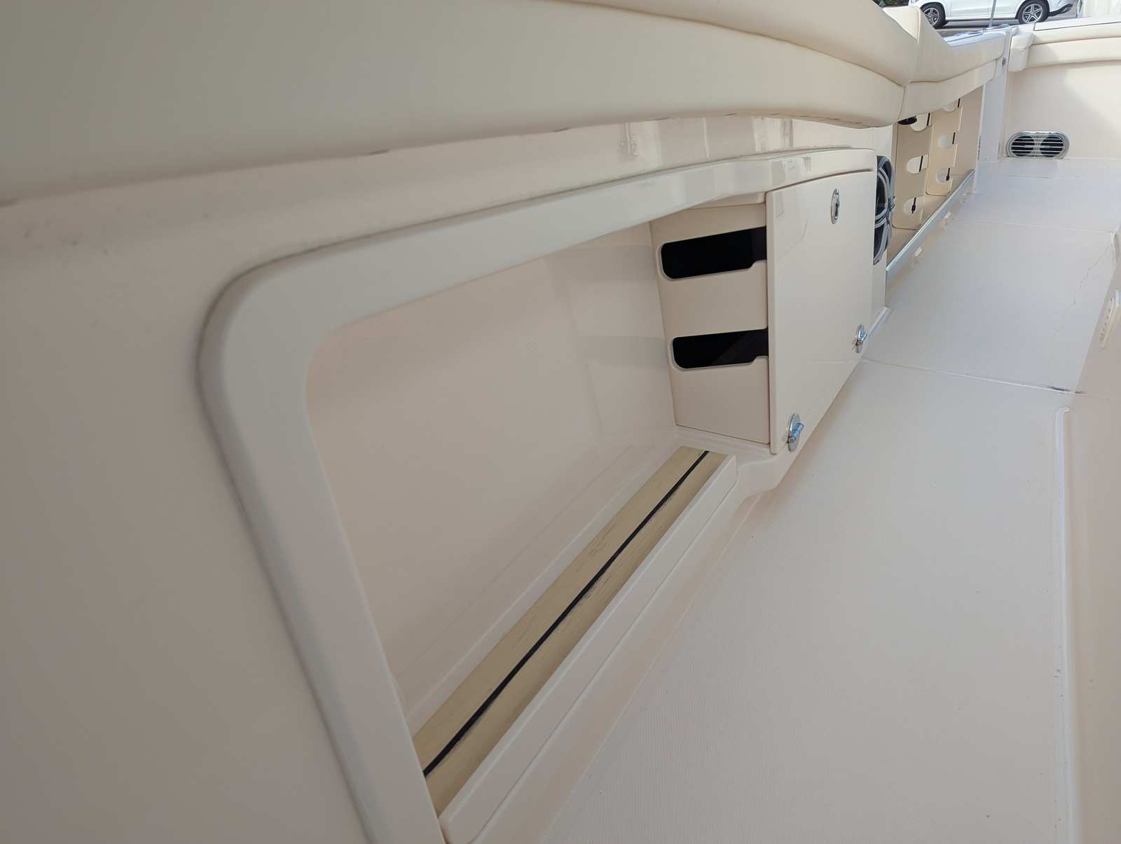 This Grady-White boat for sale is packed with special features that elevate your boating experience to new heights. The striking Gel Coat in Coastal Fog Blue gives the Canyon 456 a distinctive and elegant appearance, while the Jit Top Underside in Coastal Fog adds a touch of sophistication to the helm area. Outriggers measuring 22 feet are included, enhancing your fishing capabilities and making this Center Console boat a formidable choice for serious anglers. Every detail has been thoughtfully designed to ensure maximum enjoyment, from the spacious deck layout to the premium finishes throughout.