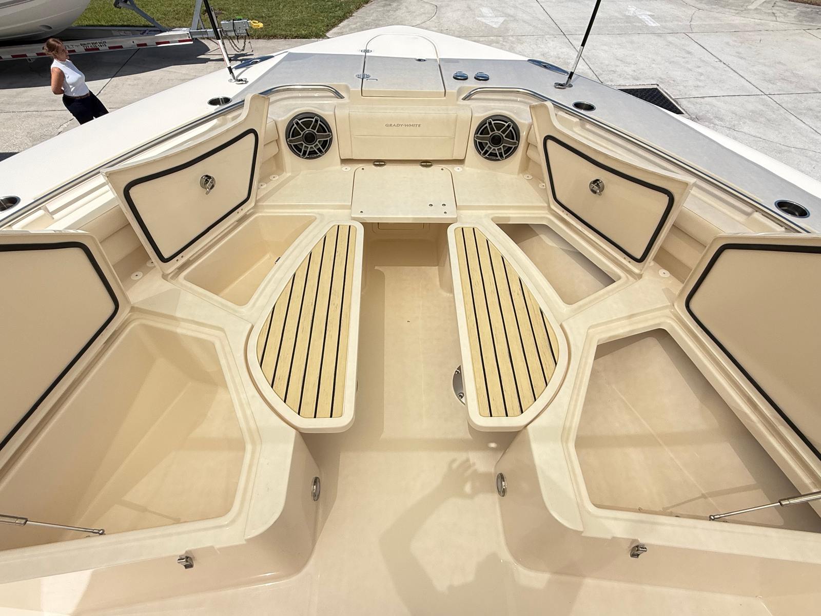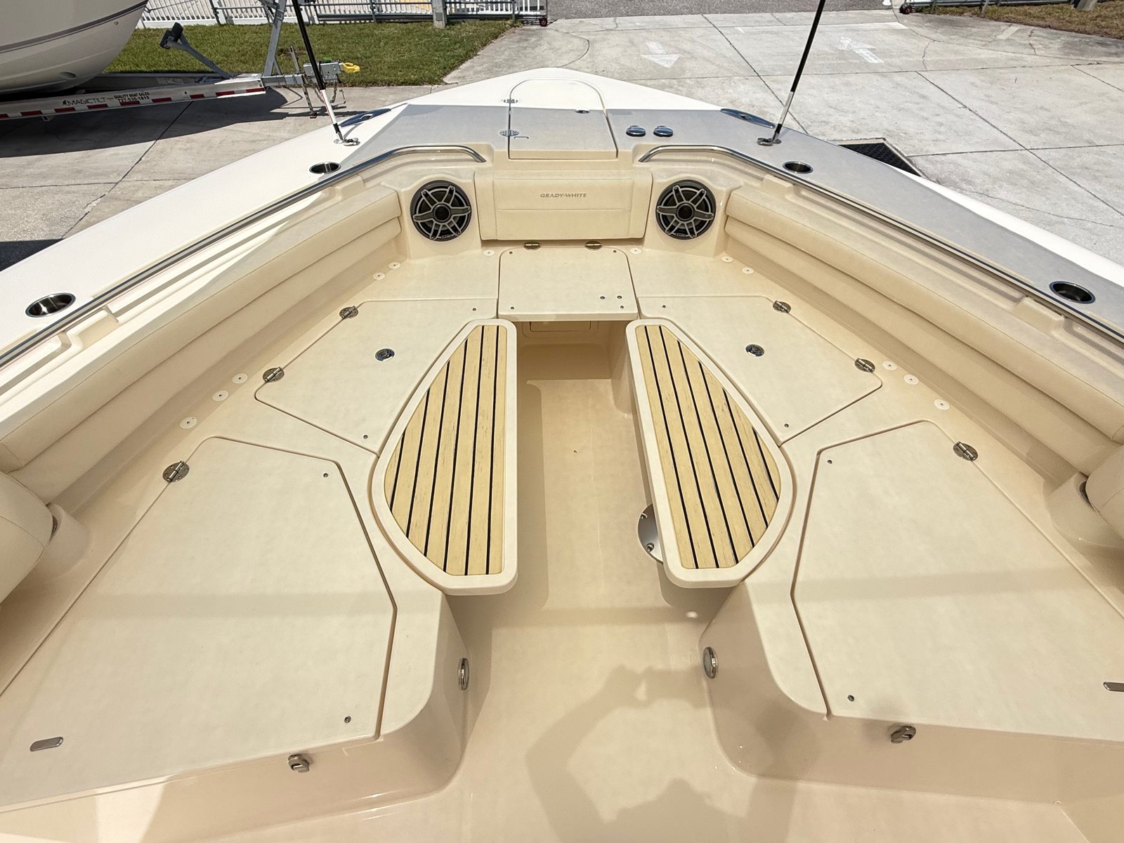 Power and precision define the performance of the Grady-White Canyon 456. Equipped with quad Yamaha XF450 engines, this center console boat boasts a combined 1800 horsepower, delivering exhilarating speed and smooth handling in a variety of sea conditions. The Yamaha Prerig ensures seamless integration and optimal performance, allowing you to harness the full potential of these powerful outboards. Whether you are heading offshore for a day of fishing or cruising along the coastline, the Canyon 456 provides the confidence and capability to tackle any adventure.