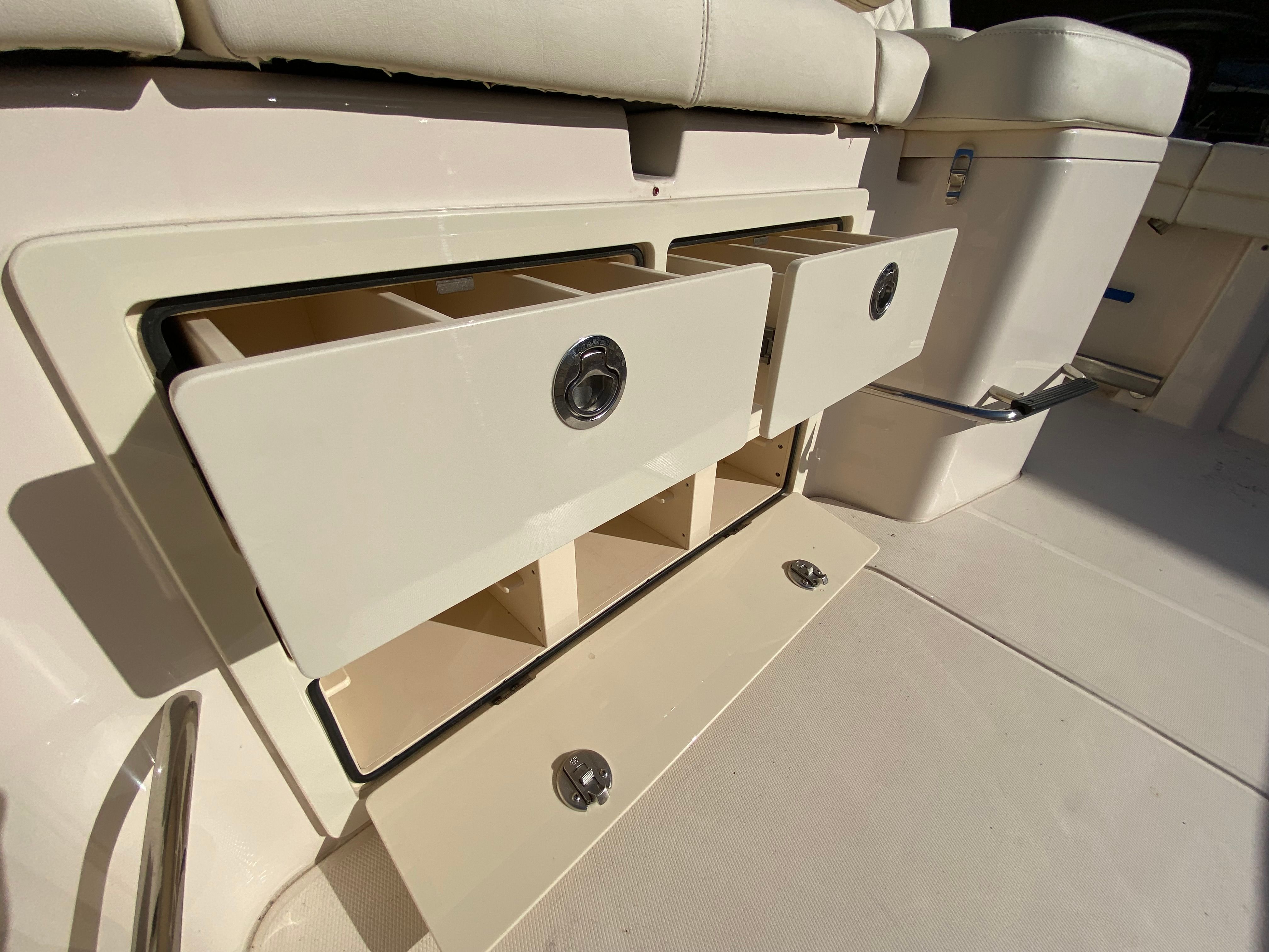 The Grady-White Canyon 456 is designed for practical enjoyment and ease of ownership. Its spacious layout offers generous storage for gear, tackle, and personal items, keeping the deck clutter-free and organized. The Center Console configuration allows for easy movement around the boat, whether you’re fighting a trophy fish or hosting a sunset cruise. Fuel efficiency is optimized through advanced engine technology, allowing you to spend more time on the water and less at the fuel dock.Docking is simplified thanks to the boat’s responsive handling and intuitive controls, making it accessible for both seasoned captains and newcomers alike. The durable construction and high-quality materials ensure low maintenance and long-lasting performance, so you can focus on making memories rather than worrying about upkeep.