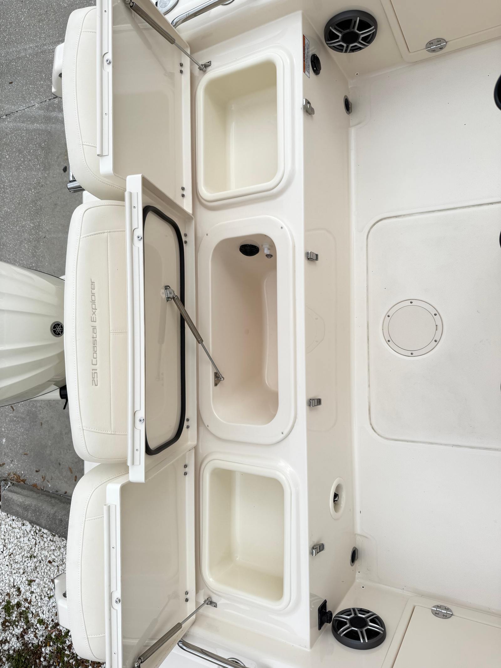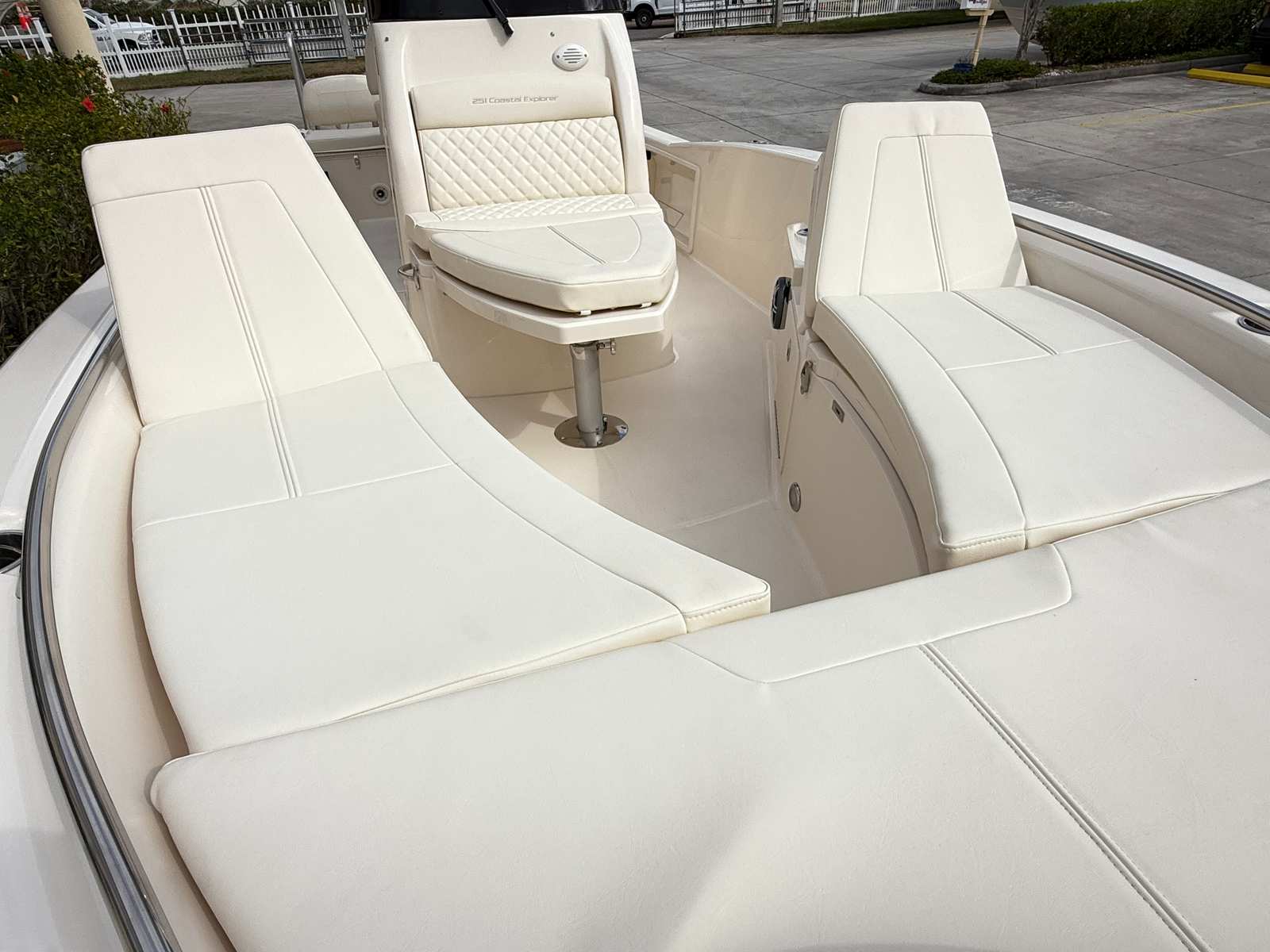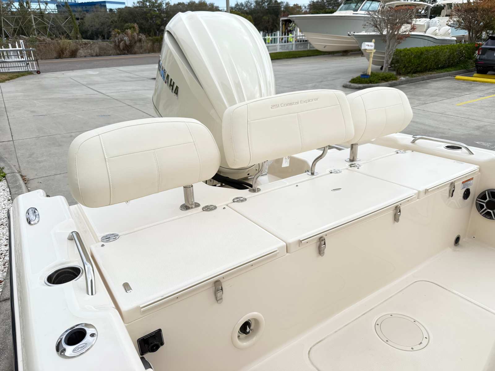 At the heart of the Coastal Explorer 251 is a powerful Yamaha F300 engine, delivering an impressive 300 horsepower. This single-engine setup is expertly matched to the hull, providing smooth acceleration, responsive handling, and efficient cruising. The prerig Yamaha F300 ensures that the engine is perfectly integrated for optimal performance and reliability. Whether you are navigating coastal waters, heading offshore, or enjoying a leisurely cruise, the Coastal Explorer 251 offers the power and agility you need for a thrilling and confident ride.
