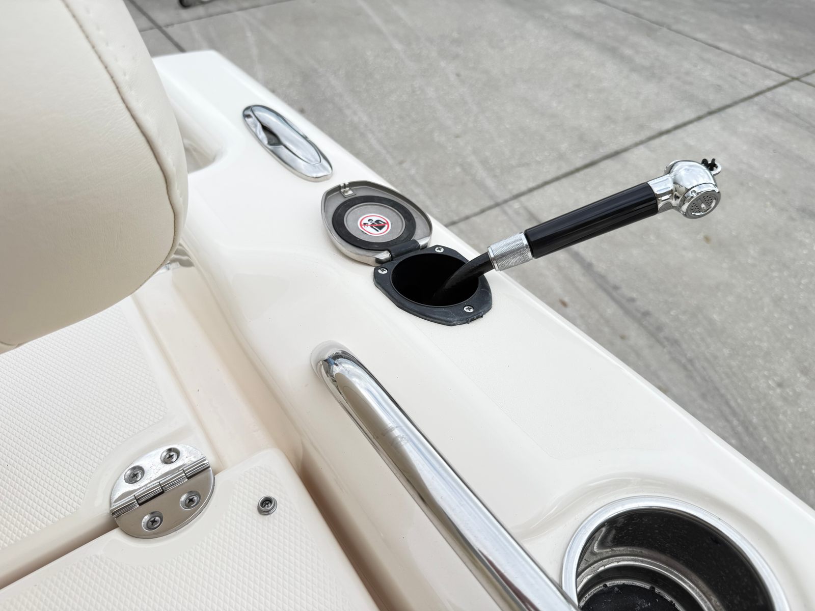 The Grady-White Coastal Explorer 251 is loaded with features designed to enhance your boating experience. The bow table and forward console extension create a versatile space for dining, entertaining, or simply relaxing in the sun. The removable aft center backrest adds flexibility to the seating arrangement, allowing you to customize the layout for comfort or fishing activities. A windshield wiper ensures clear visibility in all weather conditions, while the trolling motor prep package makes it easy to outfit the boat for serious fishing adventures.For those who love to enjoy the water after sunset, the dual underwater lights add a dramatic touch, illuminating the surroundings and creating a magical atmosphere for evening cruises. The ivory bow shade provides much-needed protection from the sun, making long days on the water more comfortable for everyone on board. Every detail, from the delete engine bolt sealer to the carefully selected gel coat color, reflects Grady-White’s dedication to quality and style.