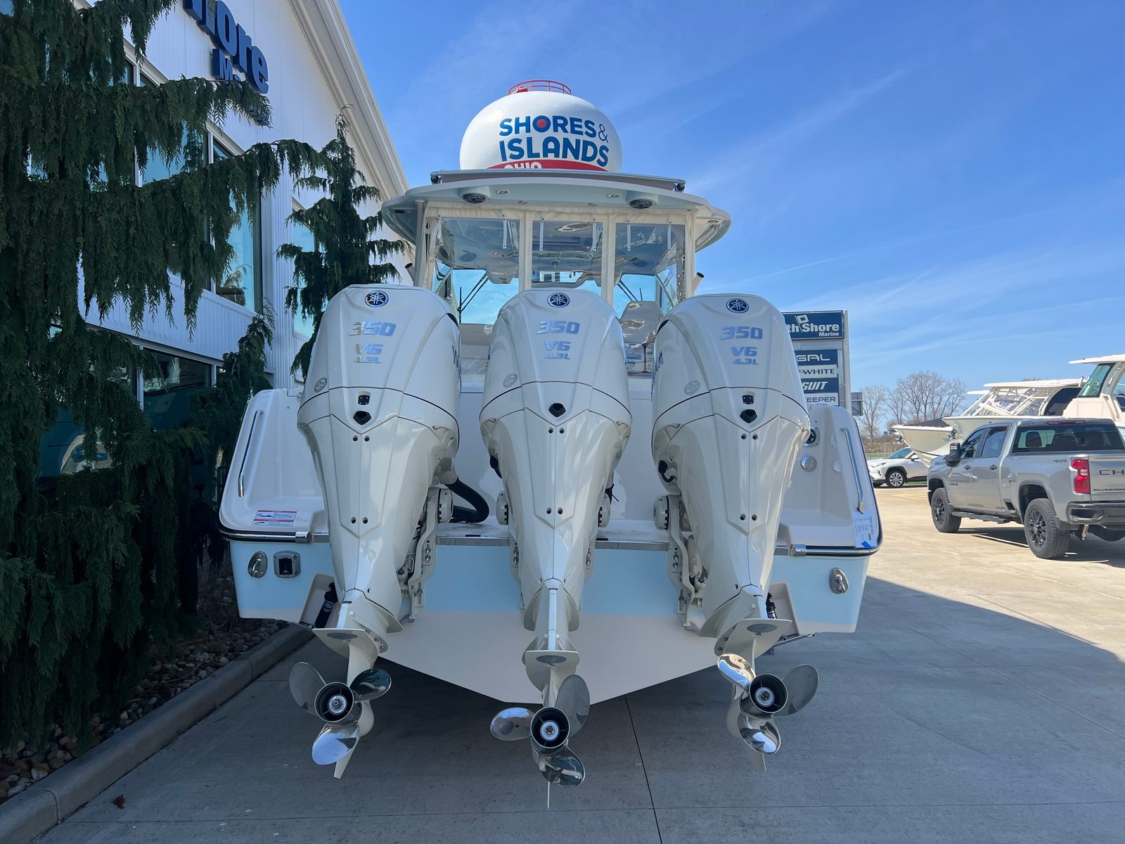 Power and precision are at the heart of the Grady-White Express 340. Equipped with triple Yamaha F350XSB engines, this cruiser boat for sale delivers a combined 1,050 horsepower, providing exhilarating speed and responsive handling. The Prerig Triple Yamaha F350XSB setup ensures seamless integration and optimal performance, making every journey smooth and efficient. Whether you are cruising along the coastline, island hopping, or heading offshore for a weekend adventure, the Express 340’s robust engine configuration offers the confidence and capability to tackle a variety of conditions. The advanced engineering behind these engines not only enhances speed and agility but also contributes to fuel efficiency, allowing you to enjoy longer trips with fewer stops.
