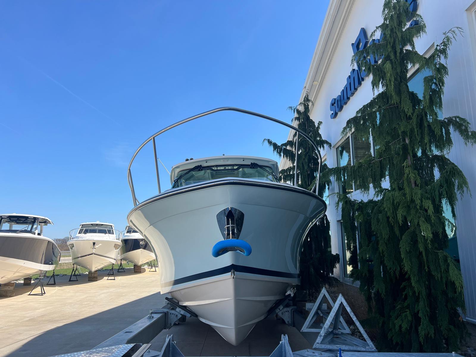 The 2026 Grady-White Express 340 stands out as a premier cruiser, boasting a length of 33.5 feet that offers ample space for relaxation, entertainment, and exploration. This new model is meticulously crafted to deliver an exceptional boating experience, blending Grady-White’s legendary build quality with innovative features and a sleek, modern design. The Express 340’s striking Ocean Mist Blue gel coat and Jit Top AV2 Underside in matching Ocean Mist create a visually captivating presence on the water, ensuring you turn heads at every marina and anchorage.
