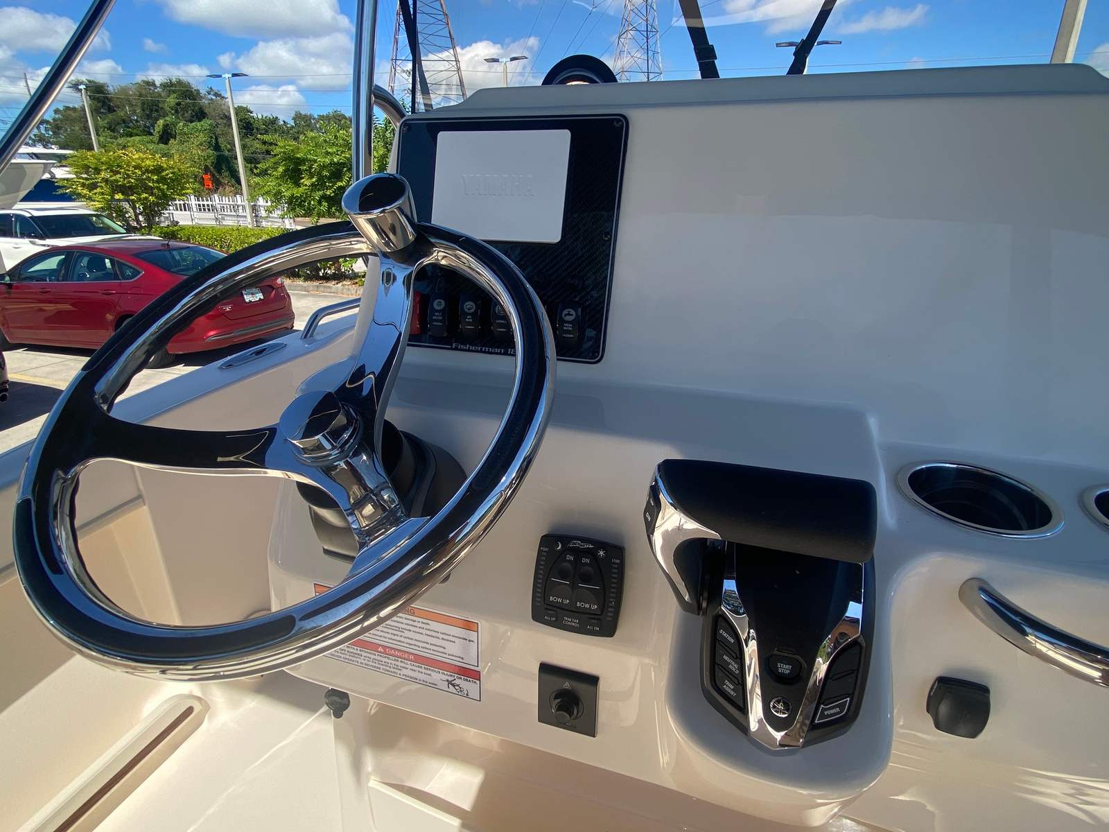 The Fisherman 180 is designed with practicality in mind, offering features that make ownership enjoyable and hassle-free. Its compact size allows for easy docking and maneuvering, even in tight spaces or busy marinas. The efficient Yamaha F150 engine helps keep fuel costs down, while the streamlined maintenance features ensure you spend more time on the water and less time in the shop. The Center Console layout provides ample storage for gear, tackle, and personal items, keeping the deck organized and clutter-free. The cockpit shower is perfect for rinsing off after swimming or cleaning up after a successful day of fishing. The Bimini Top can be quickly deployed or stowed, adapting to changing weather conditions and personal preferences.
