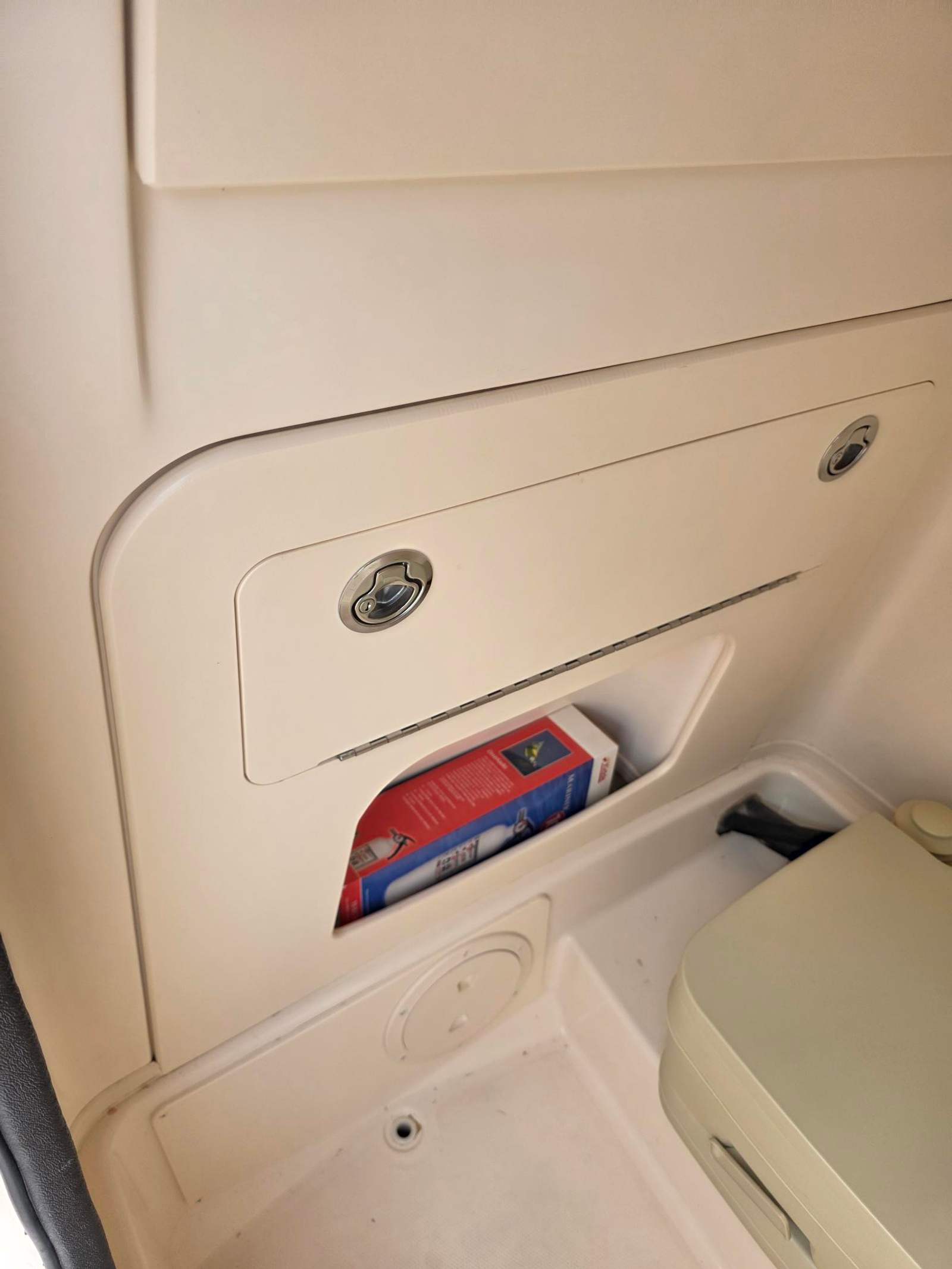 Canvas covers for seat back rests and full helm cover, Porta Head plumbed in with pump out connection, Engine Flush kit, Ski Package, Added Lemar electric Windlass, stainless steel cup holders all around, Radio box in TTOP, Rocket Launchers, Swim ladder, Fusion Stereo system, Trim Tabs, LED Trim indicators, Garmin VH Radio with antenna, Garmin GPSmap xsv and Compass... NoTrailer.