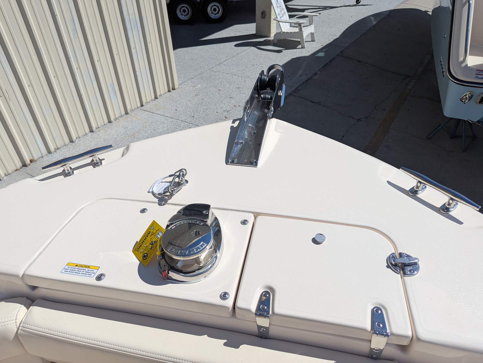 The Grady-White Fisherman 257 is packed with special features that enhance both functionality and comfort. The cockpit step on the port side provides easy access to and from the boat, making boarding and disembarking a breeze. A Yeti cooler is included, ensuring your refreshments stay cold and your catch remains fresh throughout the day. The whole gel coat in Celestial Blue, along with the Jit Top underside in the same striking hue, adds a touch of elegance and sophistication to the boat’s overall look. These features not only elevate the aesthetic appeal but also contribute to a more enjoyable and convenient boating experience.