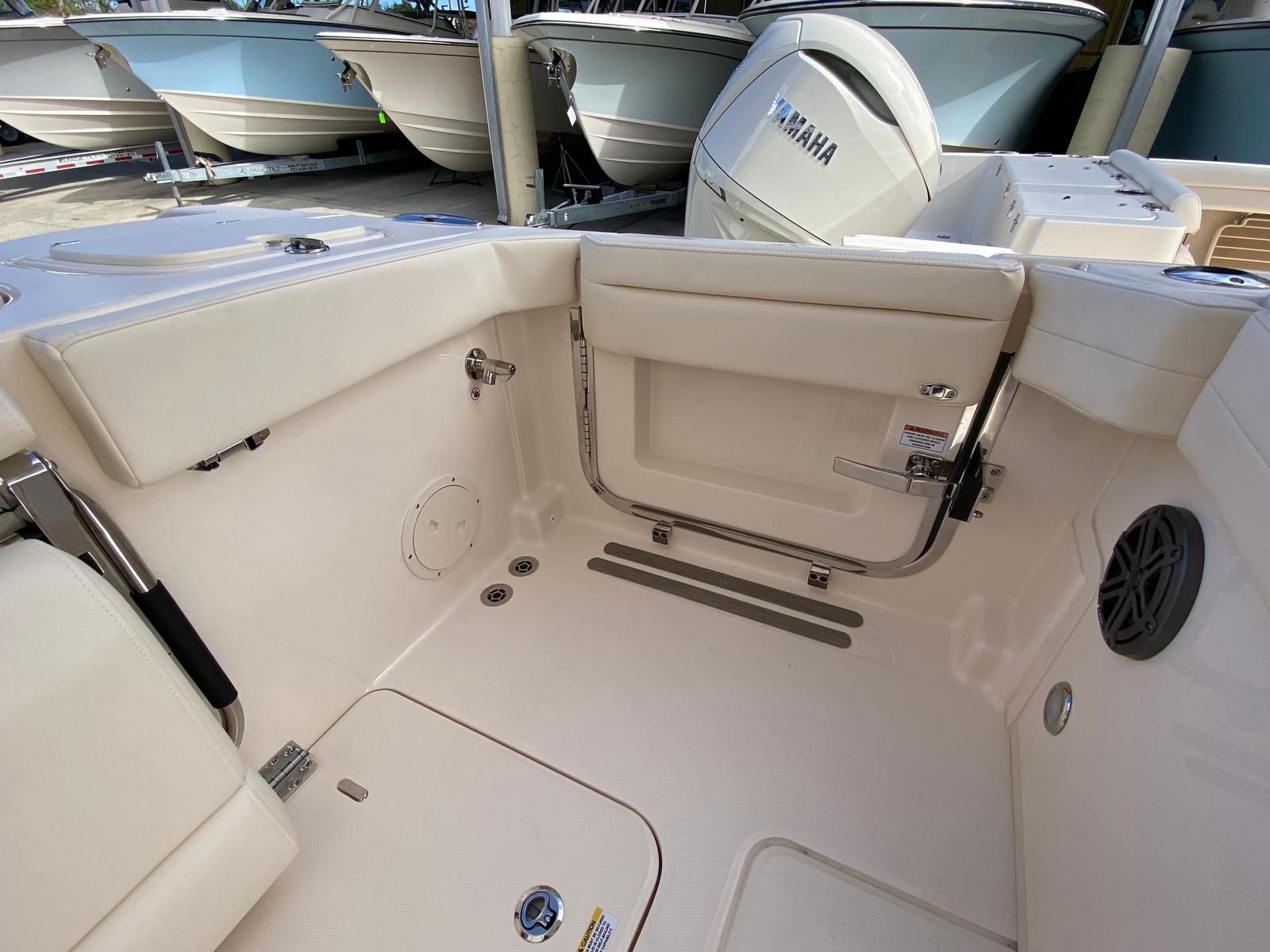 At the heart of the Grady-White Freedom 285 are twin Yamaha F300XSB engines, delivering a combined 600 horsepower for exhilarating performance and reliable power. These advanced outboards are renowned for their efficiency, quiet operation, and impressive acceleration, ensuring you can reach your favorite destinations quickly and comfortably. The PreRig Dual Yamaha F300XSB setup ensures seamless integration and optimal performance, giving you confidence in any conditions. Whether you are cruising at a leisurely pace or powering through open water, the Freedom 285 offers a responsive and enjoyable ride that sets it apart from other dual console boats for sale.