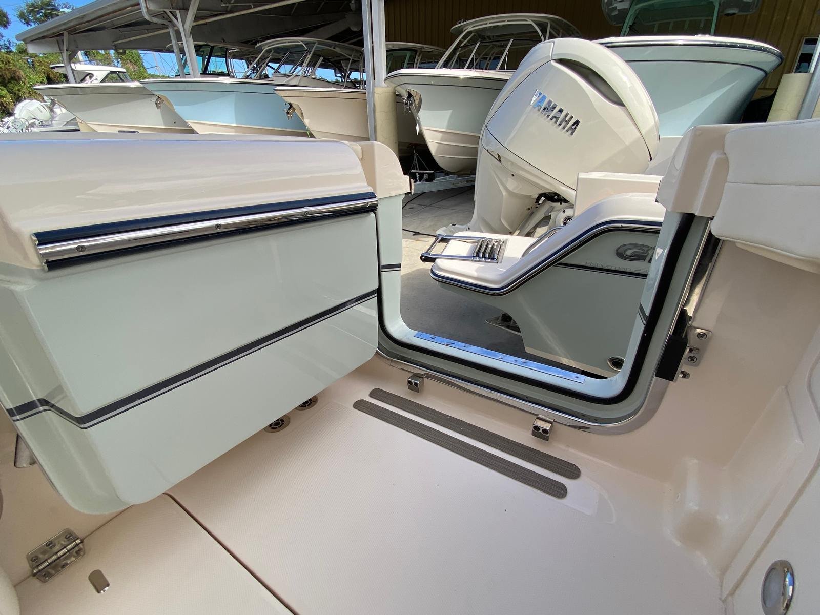 The Grady-White Freedom 285 is as practical as it is luxurious. The ample storage compartments throughout the boat make it easy to stow gear, water toys, and personal items, keeping the deck clutter-free and organized. The dual console configuration provides excellent protection from the elements, allowing you to extend your boating season and stay comfortable in changing weather. Docking and maneuvering are a breeze thanks to the responsive controls and twin-engine setup, giving you confidence in tight spaces and busy marinas.Fuel efficiency is another key benefit of the Freedom 285, with the Yamaha F300XSB engines designed to deliver impressive range and lower operating costs. Whether you are planning long-distance cruises or quick trips to your favorite fishing spot, you can enjoy more time on the water and less time at the fuel dock.
