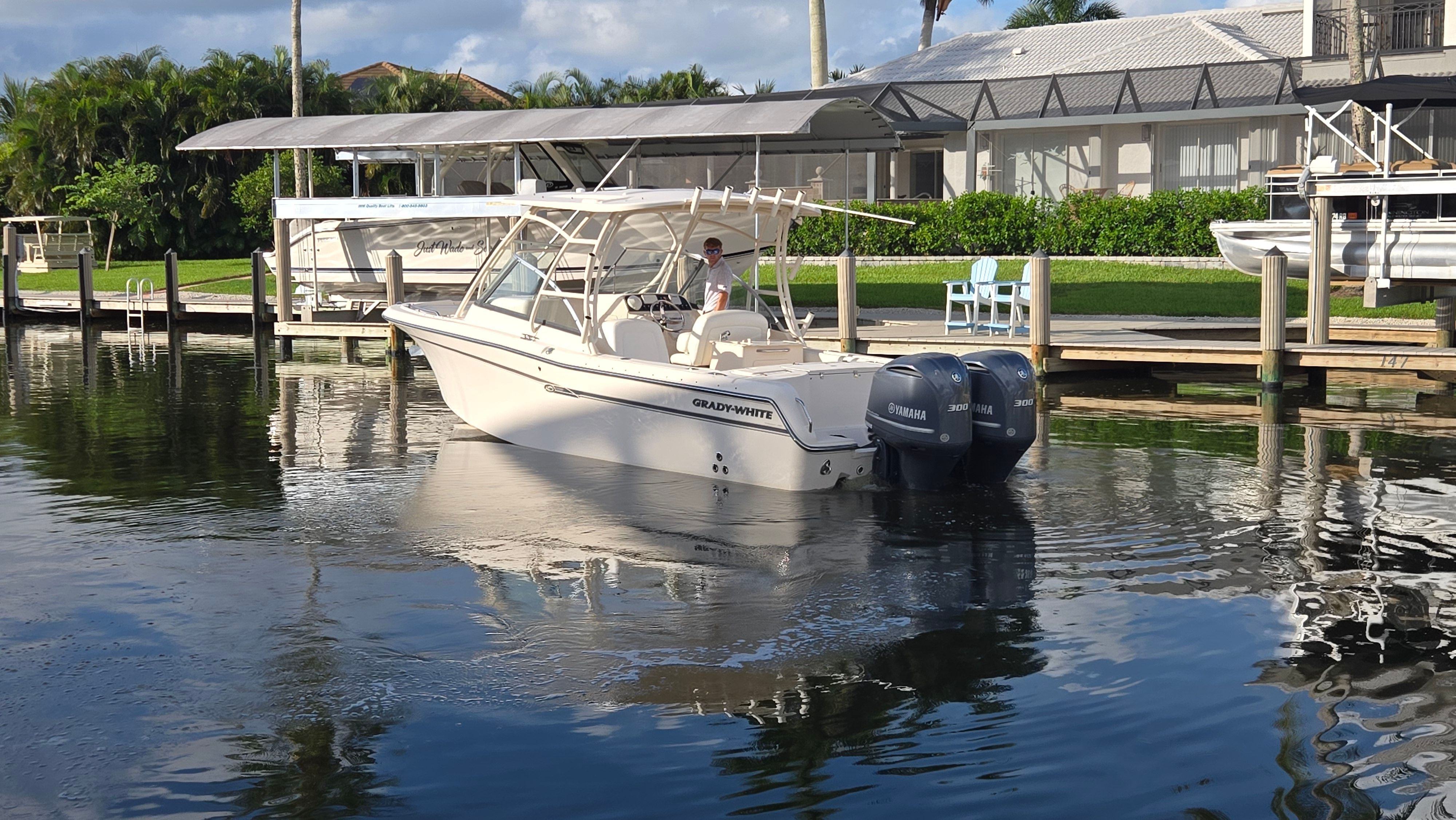 In addition to its recreational benefits, the Grady-White Freedom 285 offers a range of practical features that make ownership easy and enjoyable. The center console layout provides convenient storage options for gear, tackle, and personal items, keeping the deck organized and clutter-free. The boat’s manageable length makes docking and maneuvering straightforward, even for those new to boating. Fuel efficiency is enhanced by the modern engine design, allowing you to spend more time on the water and less time at the pump.The Freedom 285’s robust build quality ensures durability and low maintenance, so you can focus on enjoying your time on the water rather than worrying about repairs. The dual engines offer peace of mind, providing redundancy in case of unexpected issues and making longer journeys more secure. Whether you’re planning a weekend getaway or a quick afternoon escape, this center console boat for sale is designed to meet your needs and exceed your expectations.