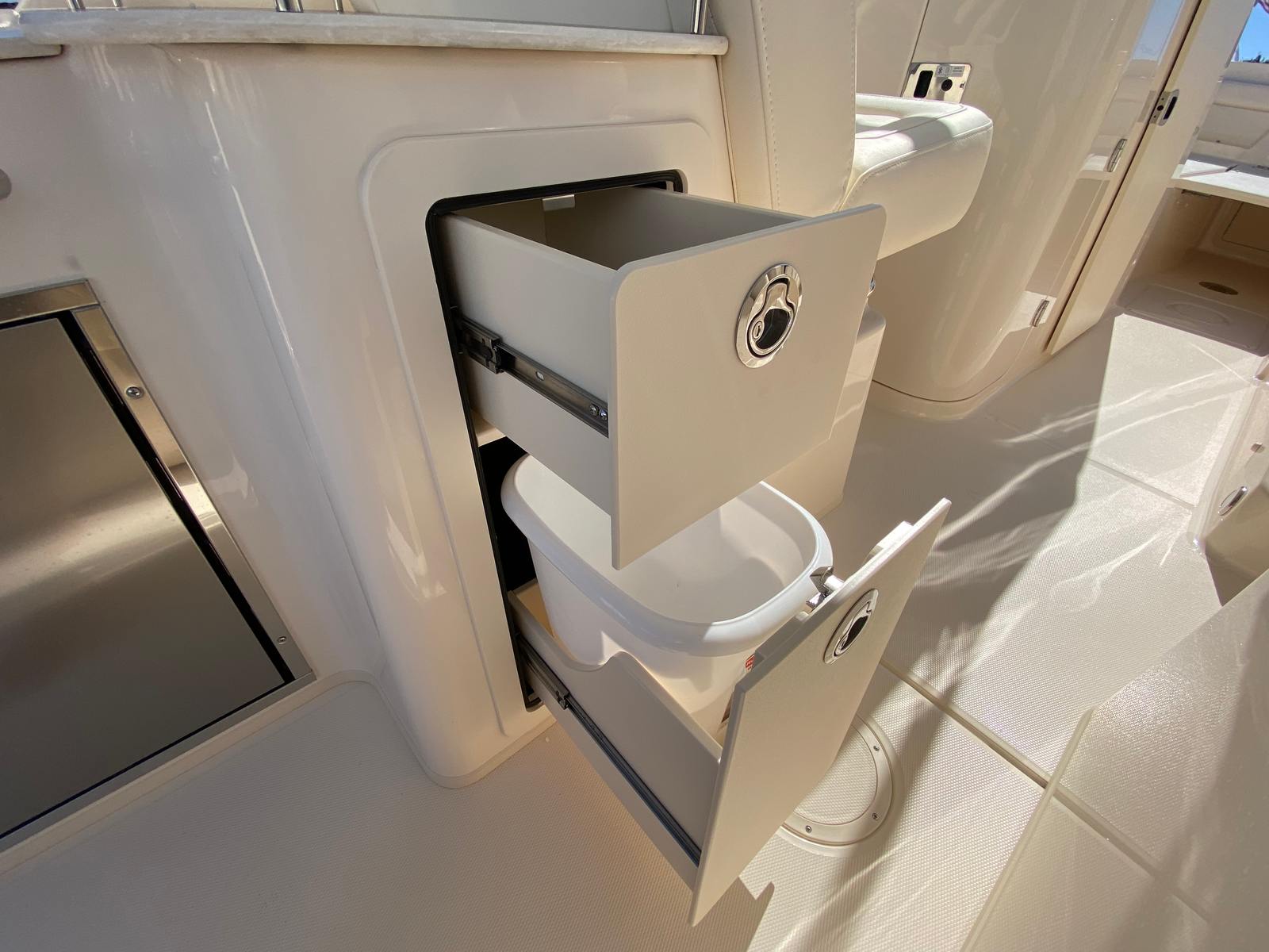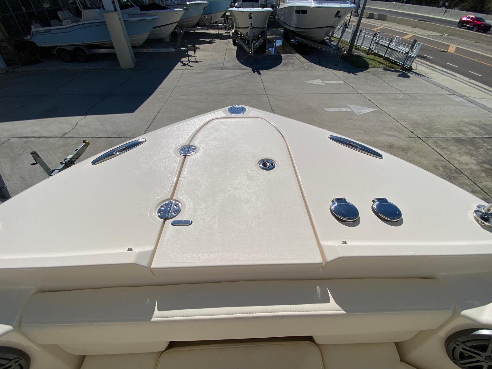 Owning a Grady-White Freedom 285 dual console boat opens the door to a world of fun, relaxation, and adventure. The spacious layout is perfect for socializing, with plenty of seating and open areas for guests to mingle, dine, or lounge. The sun platform insert with cushion transforms the deck into a luxurious sunbathing haven, while the refrigerator in the bar keeps your favorite drinks and snacks within easy reach. Underwater lights create a magical atmosphere for evening cruises, making every moment on the water memorable.The Freedom 285’s dual console design offers exceptional versatility, allowing you to seamlessly transition between fishing, cruising, and entertaining. The ample storage space ensures your gear is organized and accessible, while the protective covers and shade options provide comfort in any weather. With its powerful dual Yamaha engines, you’ll enjoy thrilling performance and reliable operation, making every outing a pleasure.
