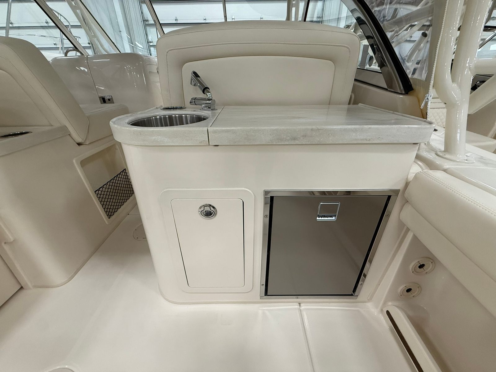 The Grady-White Freedom 307 is designed with practicality in mind, making ownership both easy and rewarding. The dual console configuration offers ample storage for gear, water toys, and personal items, keeping the deck clutter-free and organized. The bow thruster simplifies docking and maneuvering in tight spaces, while the prerig dual Yamaha F350XSB setup ensures reliable engine performance and easy maintenance. Painted HT-mounted rod holders provide secure storage for fishing rods, catering to anglers who want to keep their equipment safe and accessible. The refrigerator in the bar adds convenience for longer outings, allowing you to store food and beverages for the entire crew. With features like freight, prep, fuel, USCG gear, PDI, and orientation included, you can hit the water with confidence, knowing your boat is fully prepared for adventure.