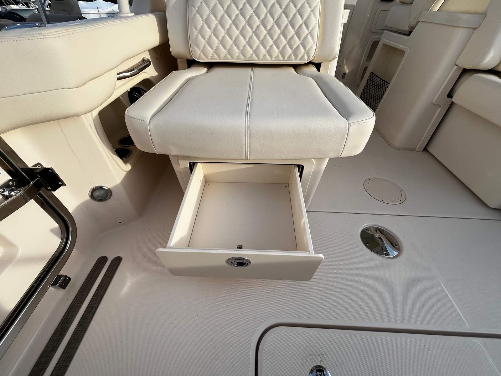Hull Color – Sage Gray with Matching Hard Top Underside: Elegant, modern styling that stands out on the water.