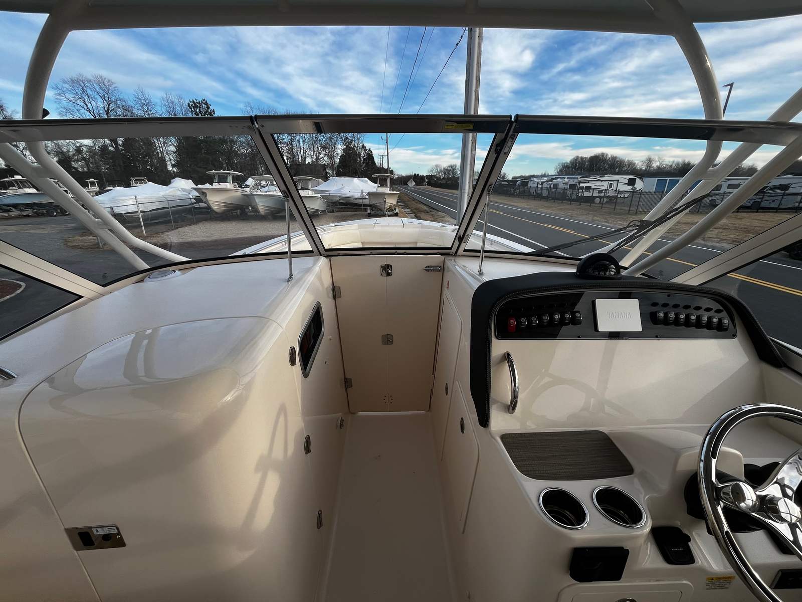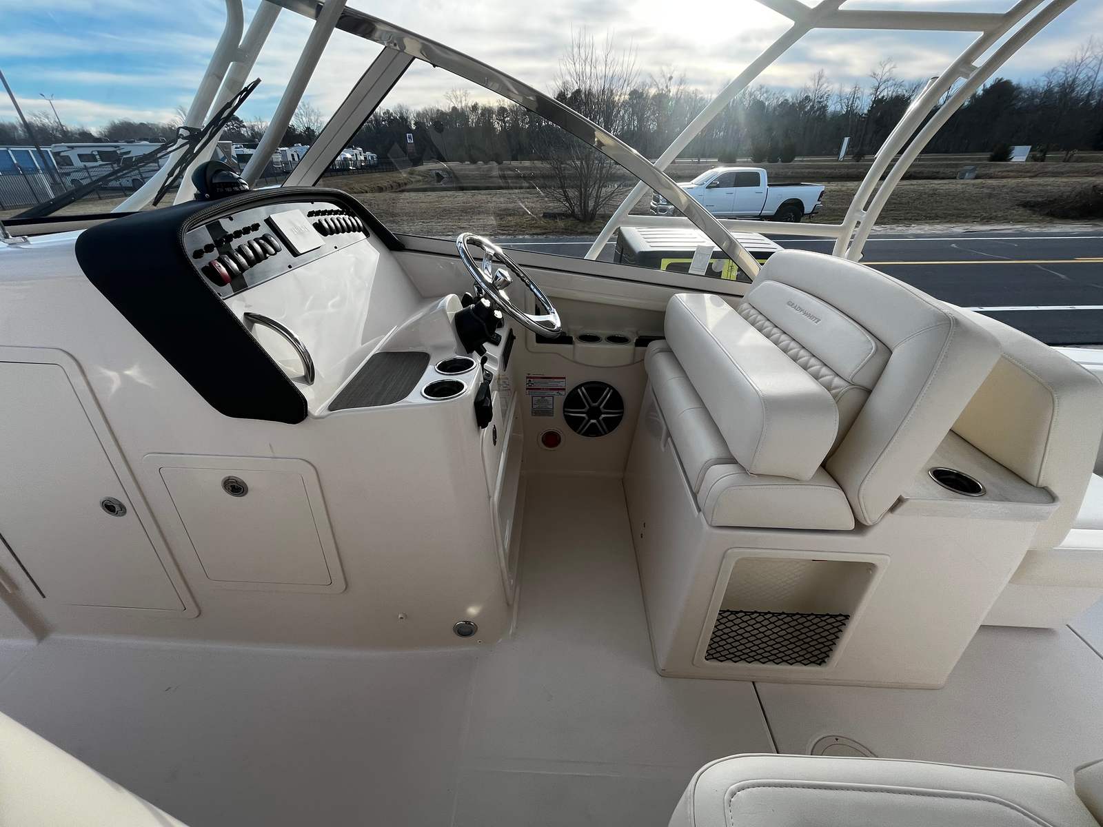 Ivory Bow Cover & Ivory Hard Top Aft Curtain: Protect interior spaces and seating from the elements when not in use.