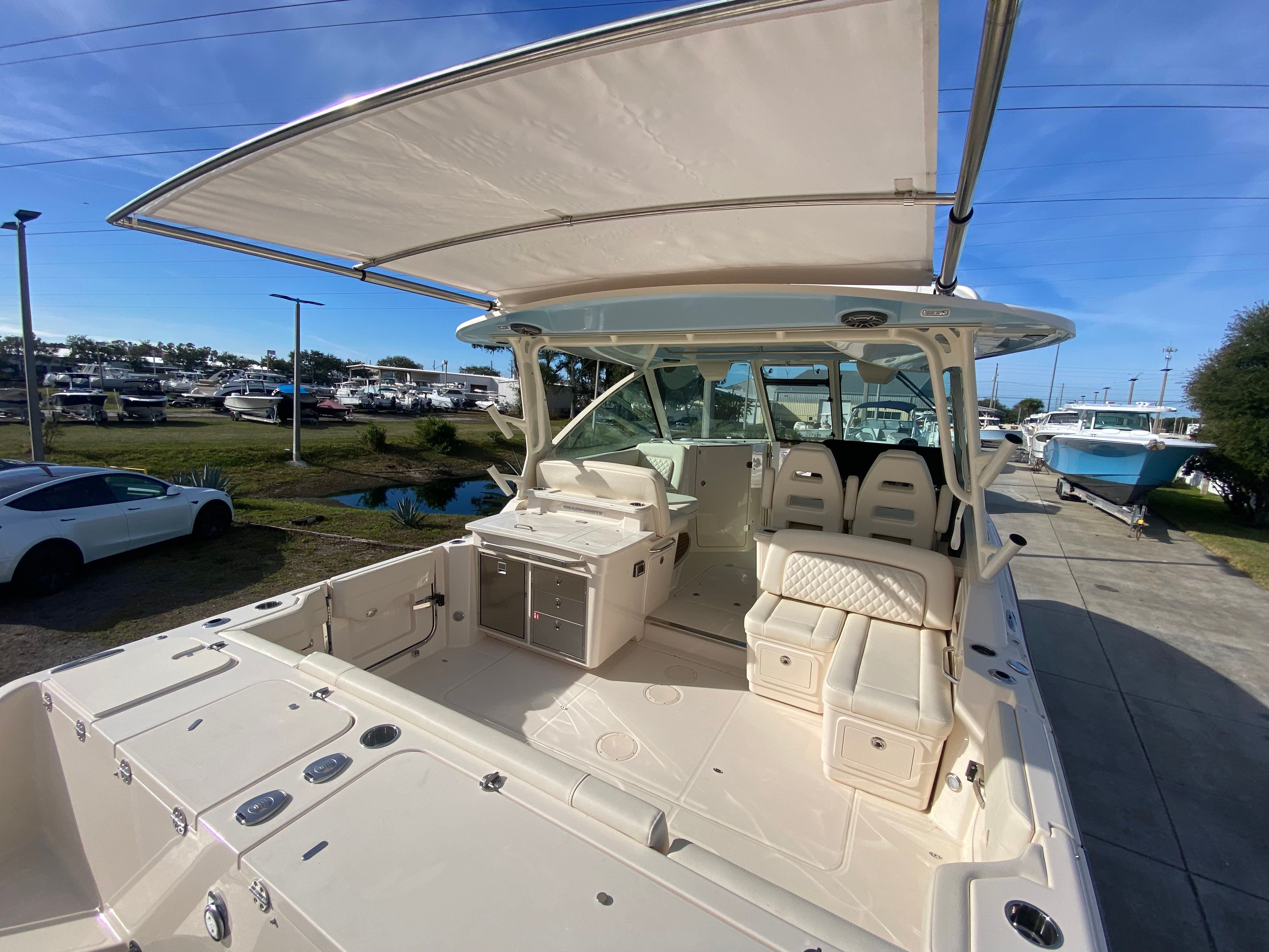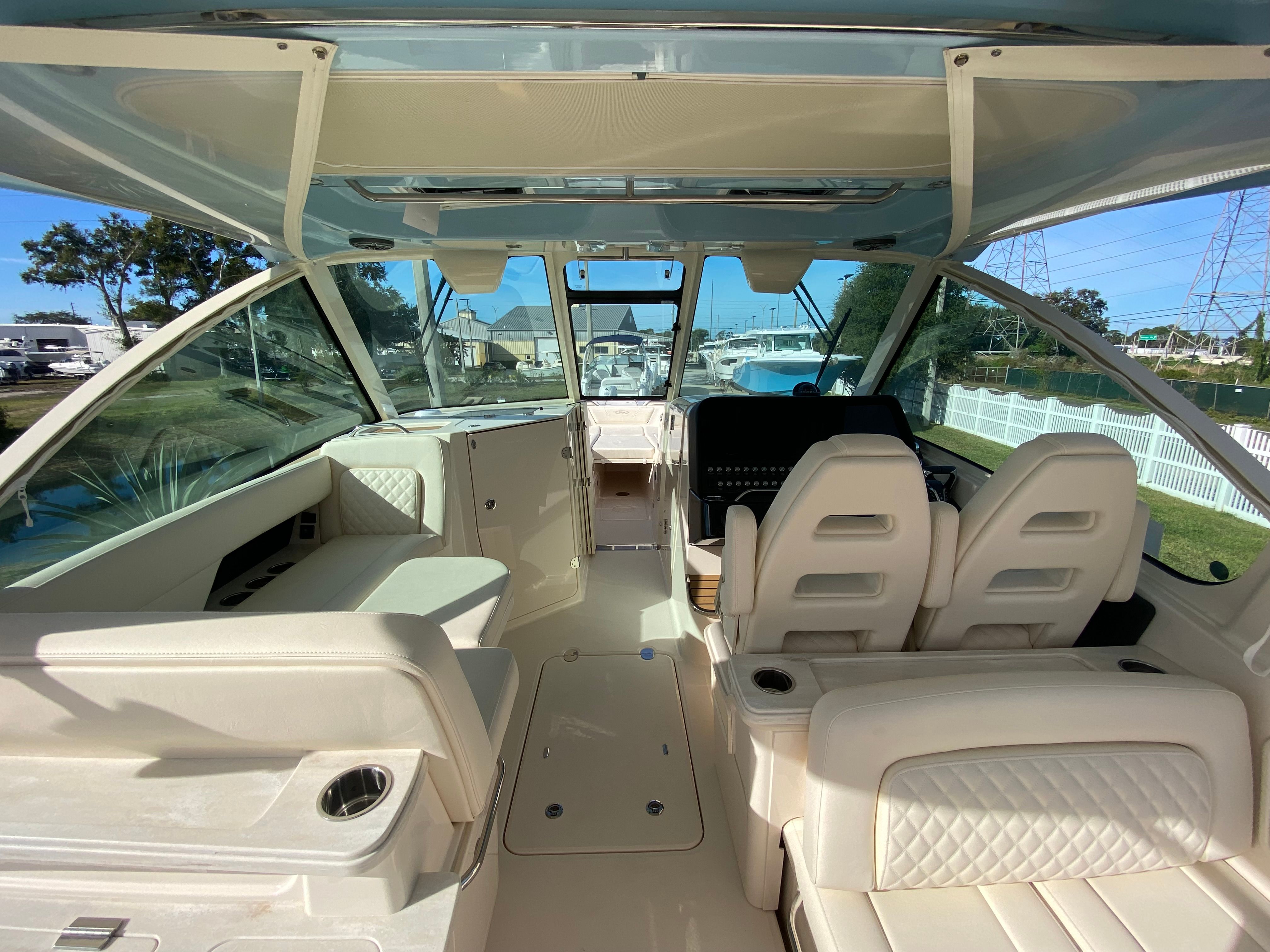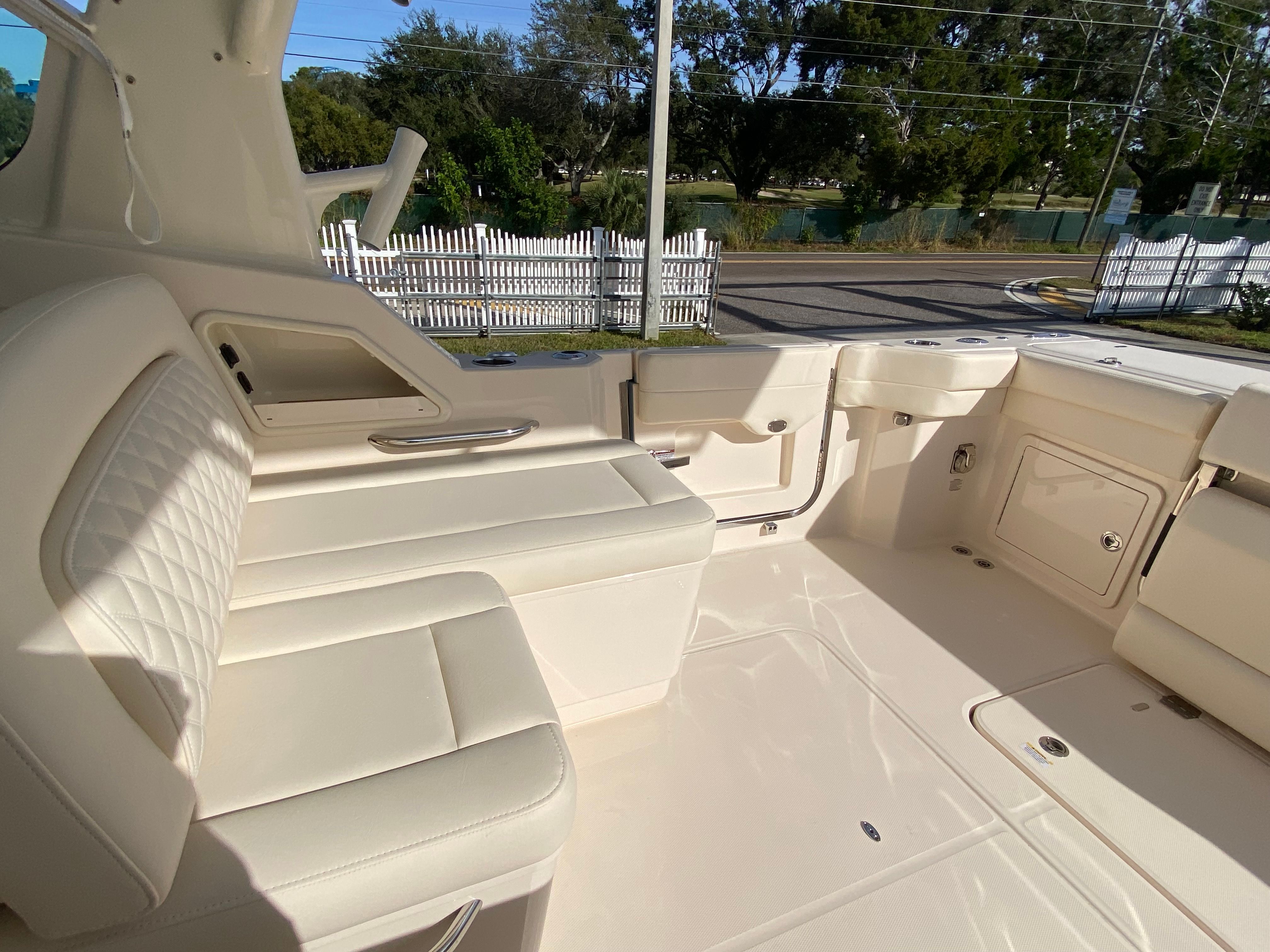 The Freedom 345 shines in a variety of scenarios, making it the ultimate Dual Console boat for sale for families, anglers, and boating enthusiasts alike. Imagine setting out for a day of fishing with friends, utilizing the refrigerated aft fish box to keep your catch fresh and the Seakeeper 3 HD stabilizer to ensure a comfortable ride. Or picture a leisurely cruise with loved ones, relaxing under the Ivory Bow Shade and enjoying the gentle glow of underwater lights as the sun sets.This Grady-White boat for sale is equally suited for luxury getaways, offering the space and amenities needed for extended trips along the coast or to your favorite island destination. The versatile layout accommodates both intimate gatherings and larger groups, making it easy to tailor each outing to your unique preferences. Whether you’re seeking adventure, relaxation, or a bit of both, the Freedom 345 delivers in every way.