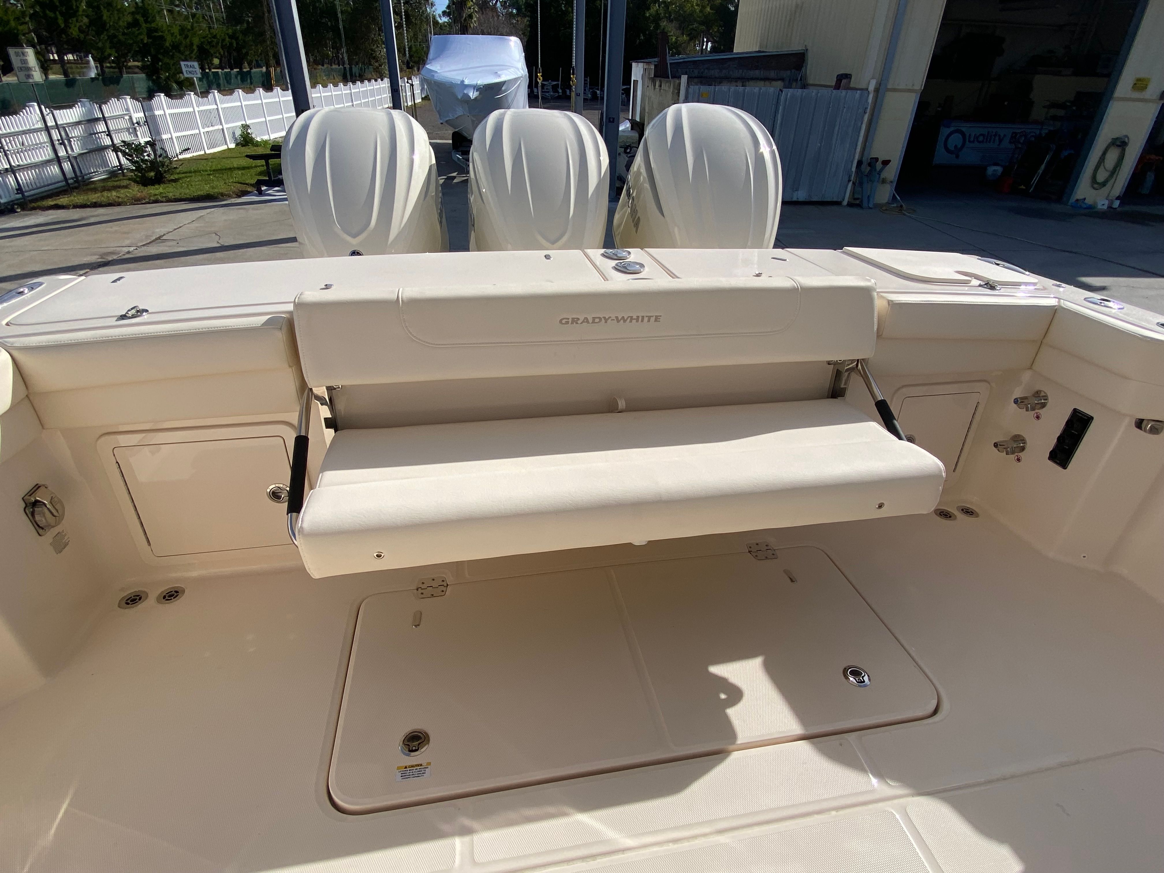 The Grady-White Freedom 345 is designed with practicality in mind, making ownership a breeze. Its generous length and smart layout provide ample storage for gear, supplies, and personal items, ensuring that everything you need is always within reach. Docking is simplified by the boat’s responsive handling and powerful triple-engine configuration, allowing for easy maneuvering in tight spaces.Fuel efficiency is a hallmark of the Yamaha F350XSB engines, so you can spend more time enjoying the water and less time refueling. The durable Celestial Blue gel coat not only looks stunning but also offers long-lasting protection against the elements, reducing maintenance and preserving the boat’s beauty for years to come. The underwater lights add a practical touch for nighttime docking and enhance safety during evening outings.