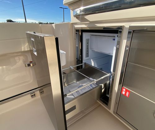 Owning the Grady-White Freedom 345 means embracing a lifestyle of fun, relaxation, and adventure. The spacious Dual Console layout is perfect for socializing, with ample seating and open areas that invite conversation and laughter. Whether you’re hosting a sunset cocktail party, enjoying a family picnic, or simply lounging in the sun, this boat provides the ideal setting for making memories.The advanced Seakeeper 3 HD stabilizer ensures that everyone onboard remains comfortable, even when the water gets choppy. The combination of the Ivory Bow Shade and curtains allows you to create shaded retreats or open-air spaces as desired, catering to every guest’s preference. The refrigerated aft fish box is a game-changer for fishing enthusiasts, keeping your catch fresh and your supplies cool throughout the day.