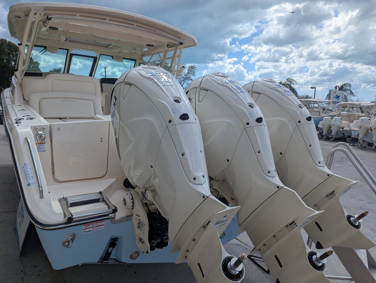 The 2026 Grady-White Freedom 375 is loaded with special features that elevate your boating experience. The Celestial Blue gel coat gives the boat a distinctive and elegant appearance, ensuring you turn heads at every marina. For those who appreciate comfort and protection from the elements, the Freedom 375 comes equipped with an Ivory Bow Shade, Ivory Top Aft Curtain, Ivory Top Drop Curtain, and Ivory Bow Cover. These features provide versatile options for sun protection and privacy, allowing you to customize your environment to suit the day's activities.The triple Yamaha XF450 engines are not only powerful but also engineered for efficiency and quiet operation, ensuring a pleasant ride for everyone onboard. The Yamaha Wireless Joystick is a standout feature, offering intuitive control for docking and close-quarters maneuvering. This advanced system simplifies the boating experience, making it accessible and enjoyable for boaters of all skill levels.