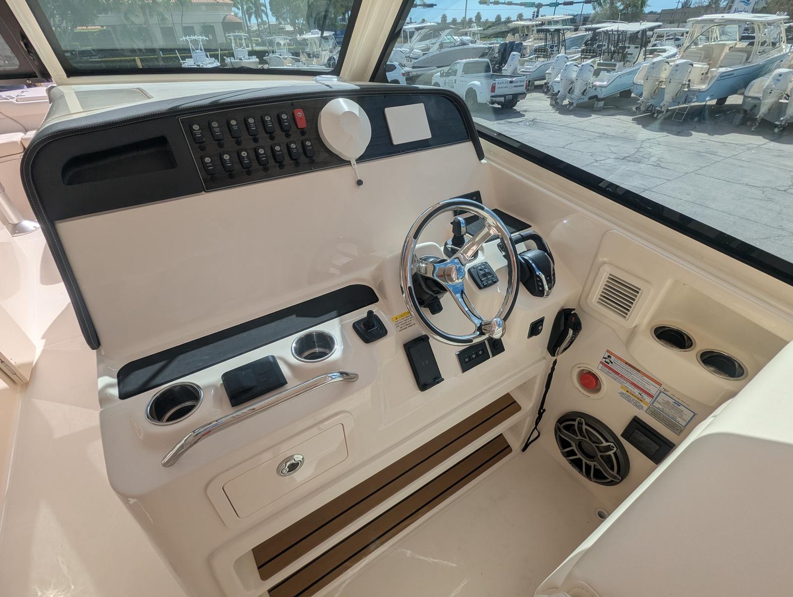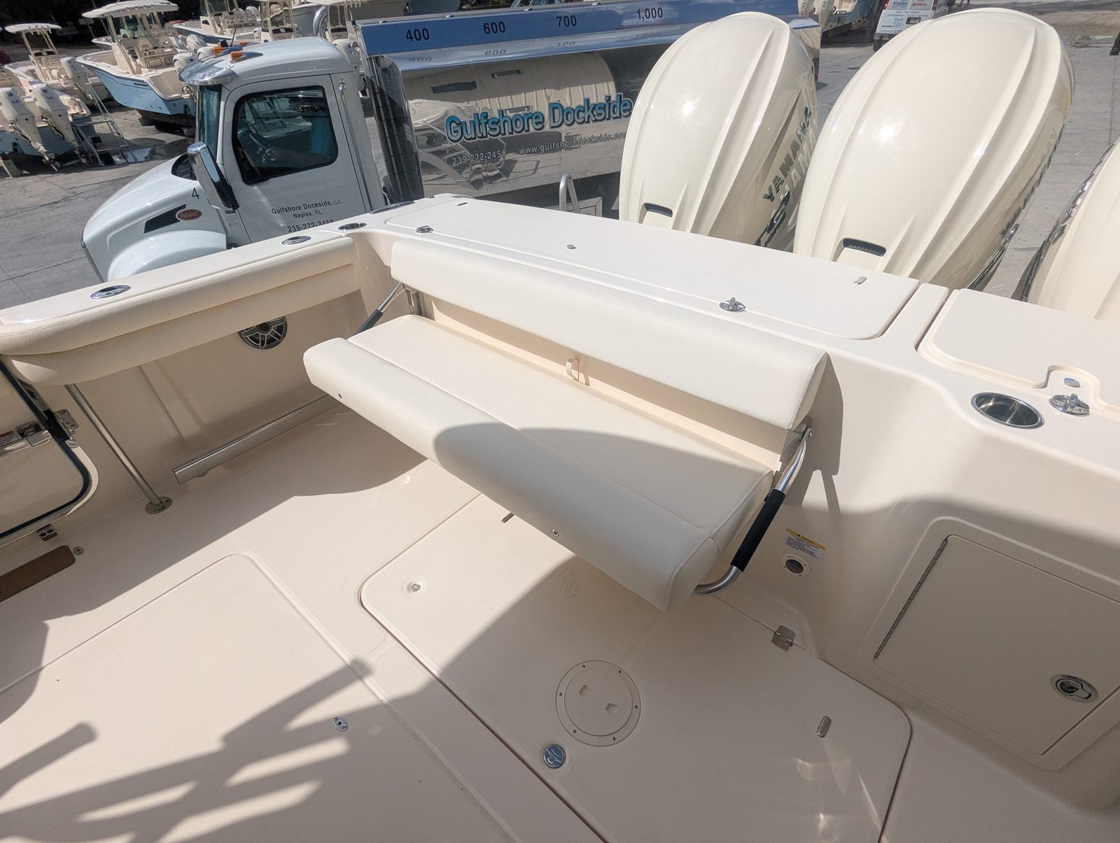 Power and precision are at the heart of the Grady-White Freedom 375. Equipped with triple Yamaha XF450 outboard engines, this dual console boat delivers a combined 1,350 horsepower, providing exhilarating speed and smooth handling in a variety of conditions. Whether you are cruising along the coastline, heading out for a day of offshore fishing, or enjoying watersports with family and friends, the Freedom 375 offers unmatched performance and reliability. The inclusion of the Yamaha Wireless Joystick enhances maneuverability, making docking and tight turns effortless, even for less experienced captains.