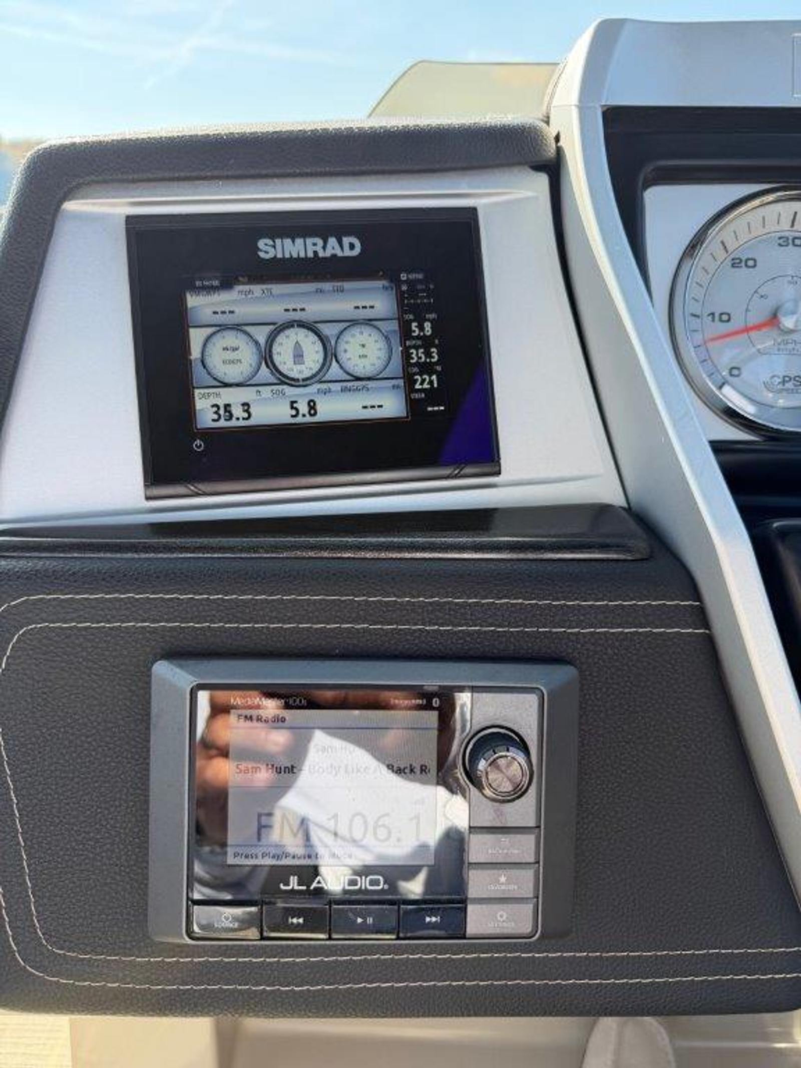 Loaded with premium upgrades, this Crowne includes an impressive JL Audio sound system with Bluetooth and USB connectivity, offering rich, powerful sound throughout the boat. The integrated Simrad electronics package features a plotter, sounder, and engine gauges for confident navigation and monitoring wherever you go.