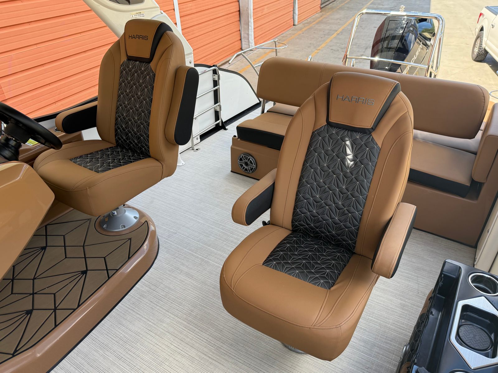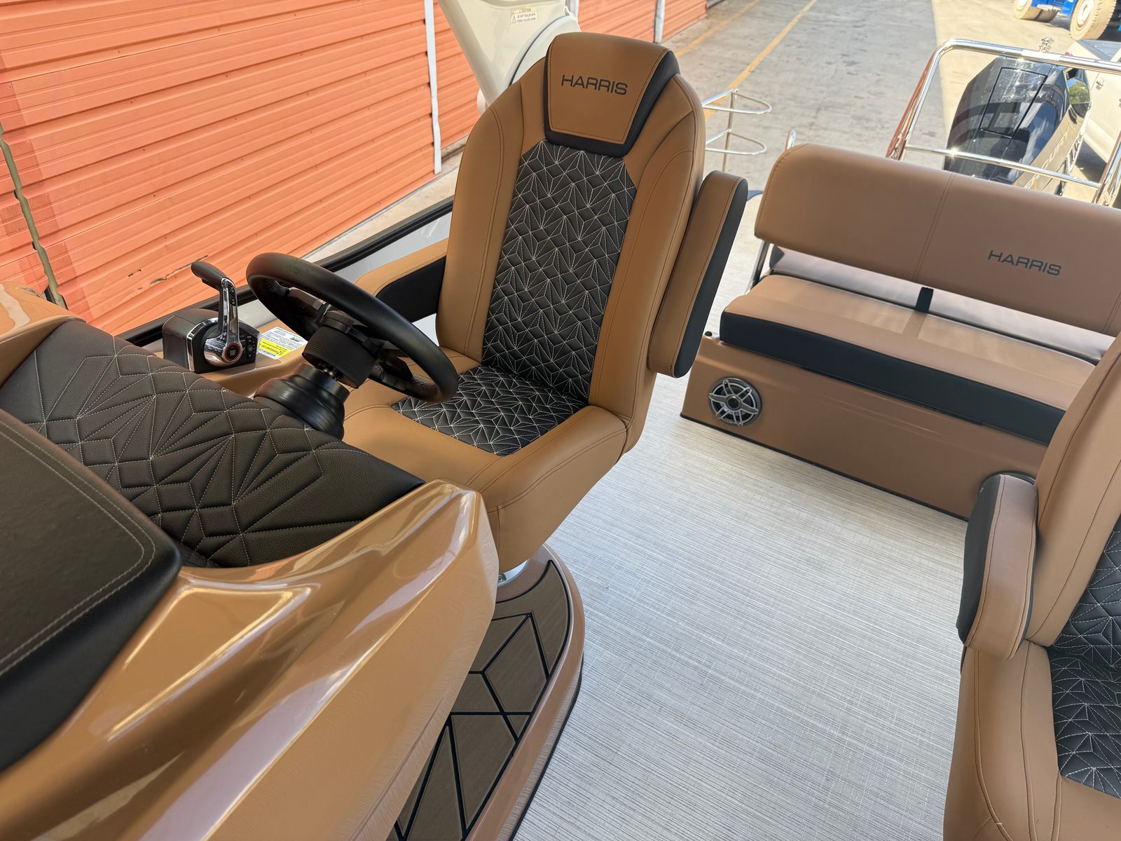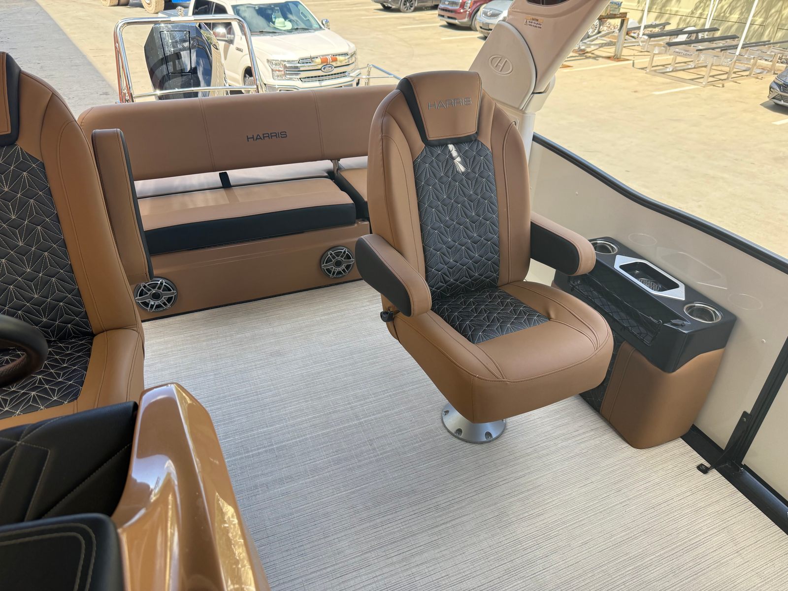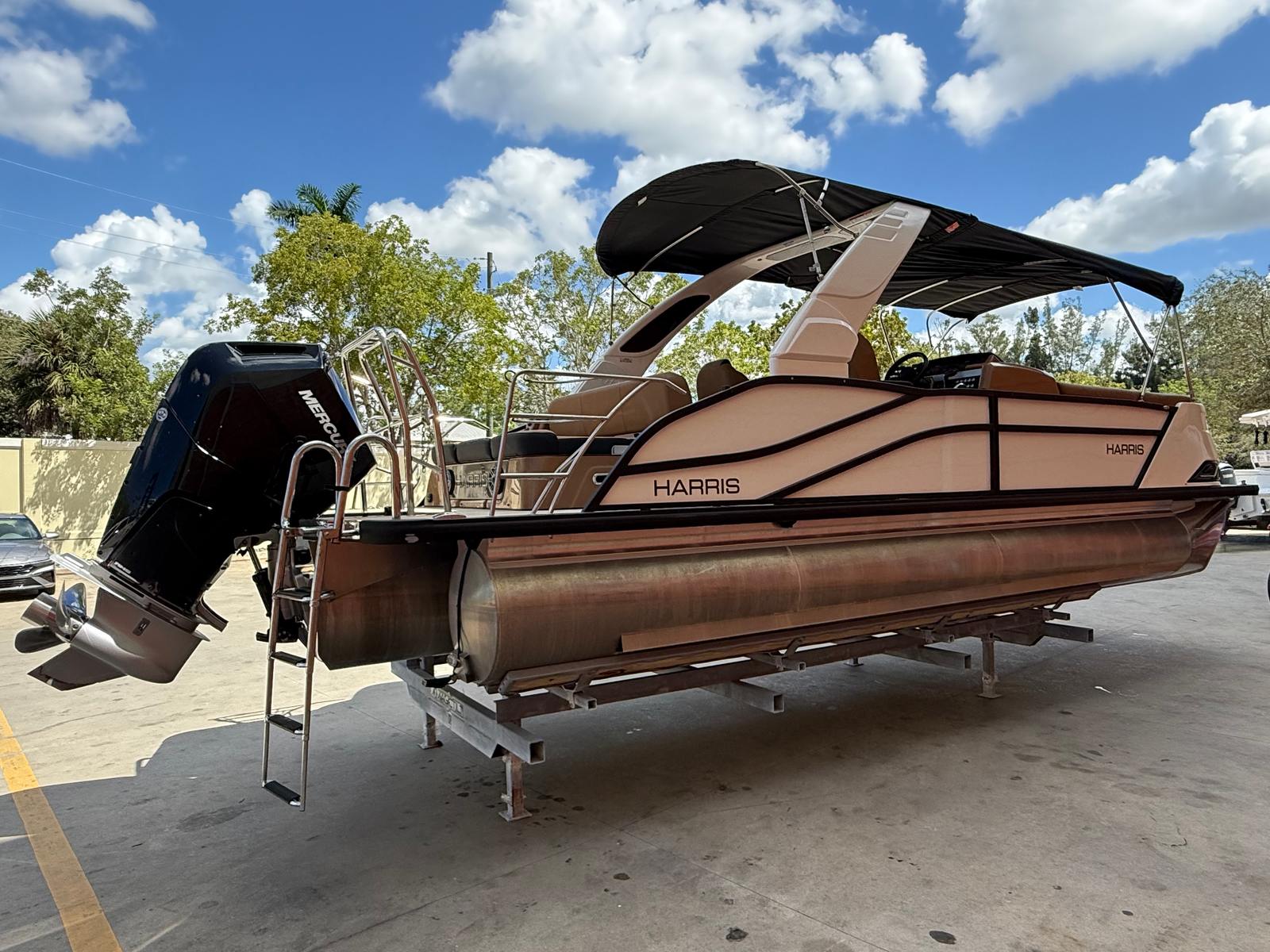 New to the market (9/2025), this 2024 Harris Grand Mariner 250 does not disappoint!! She is powered by a Mercury 350L V10 Verado with only 38 HOURS. She has a Collapsible Tower with Power Lift...press of a button at the Helm. Her Chestnut Brown upholstery with ONYX accents is stunning. She has double Captains Chairs with U-Lux (Hiback) and elevated Helm. Operating this GEM is extremely smooth with her Mercury Power Assist Steering.
