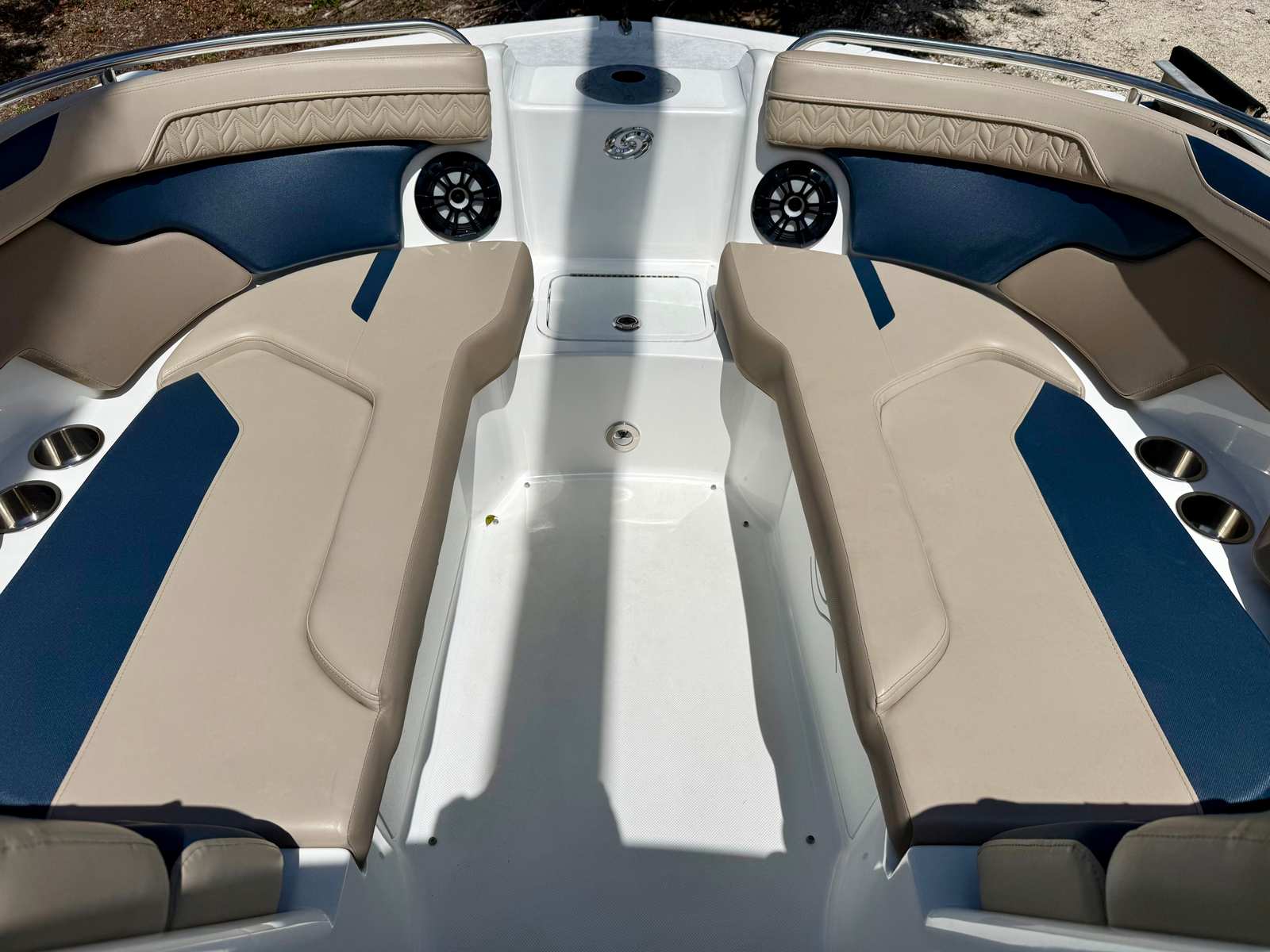 Powering the Hurricane Sundeck 2200 DC OB is a single, robust engine delivering an impressive 200 horsepower. This setup ensures responsive handling, smooth acceleration, and the confidence to tackle a variety of water conditions. The 200-horsepower outboard engine provides the perfect blend of speed and efficiency, allowing you to glide across the water with ease. Whether you’re towing water toys, heading out for a day of fishing, or simply enjoying a sunset cruise, the Sundeck 2200 DC OB offers the performance you need for both excitement and peace of mind.