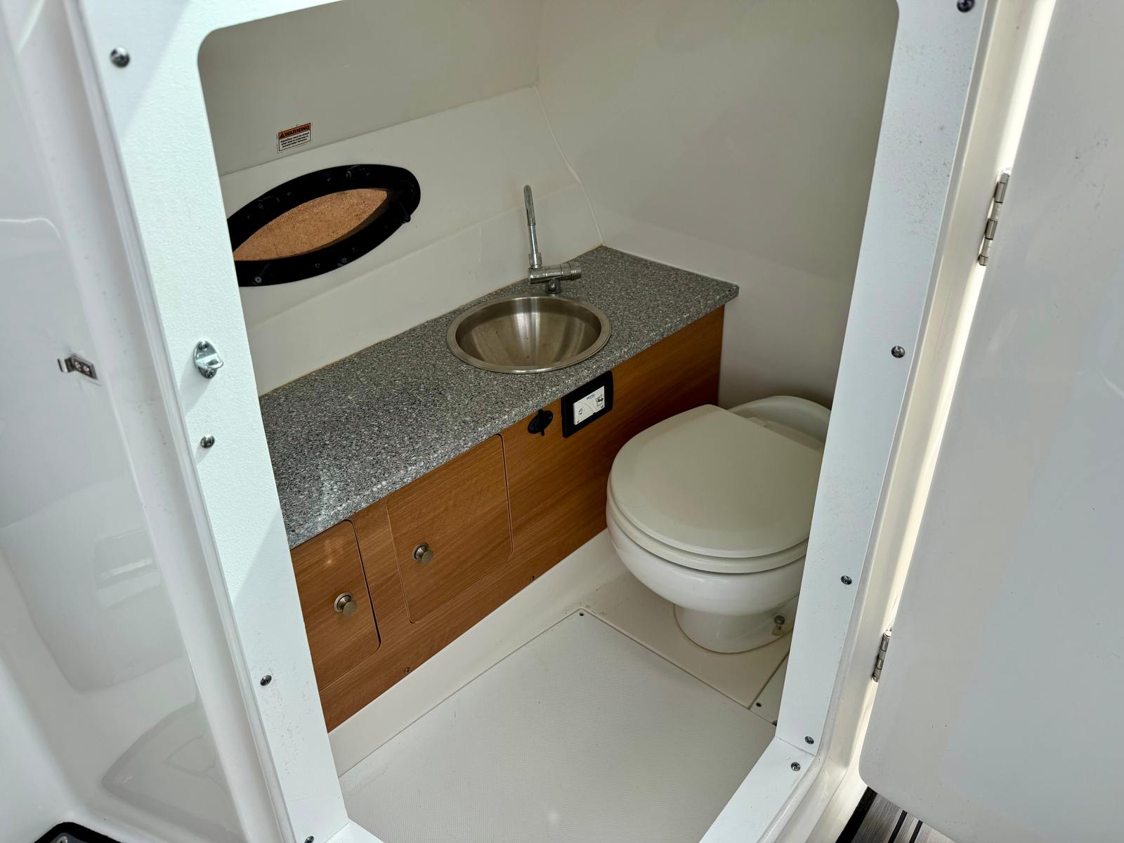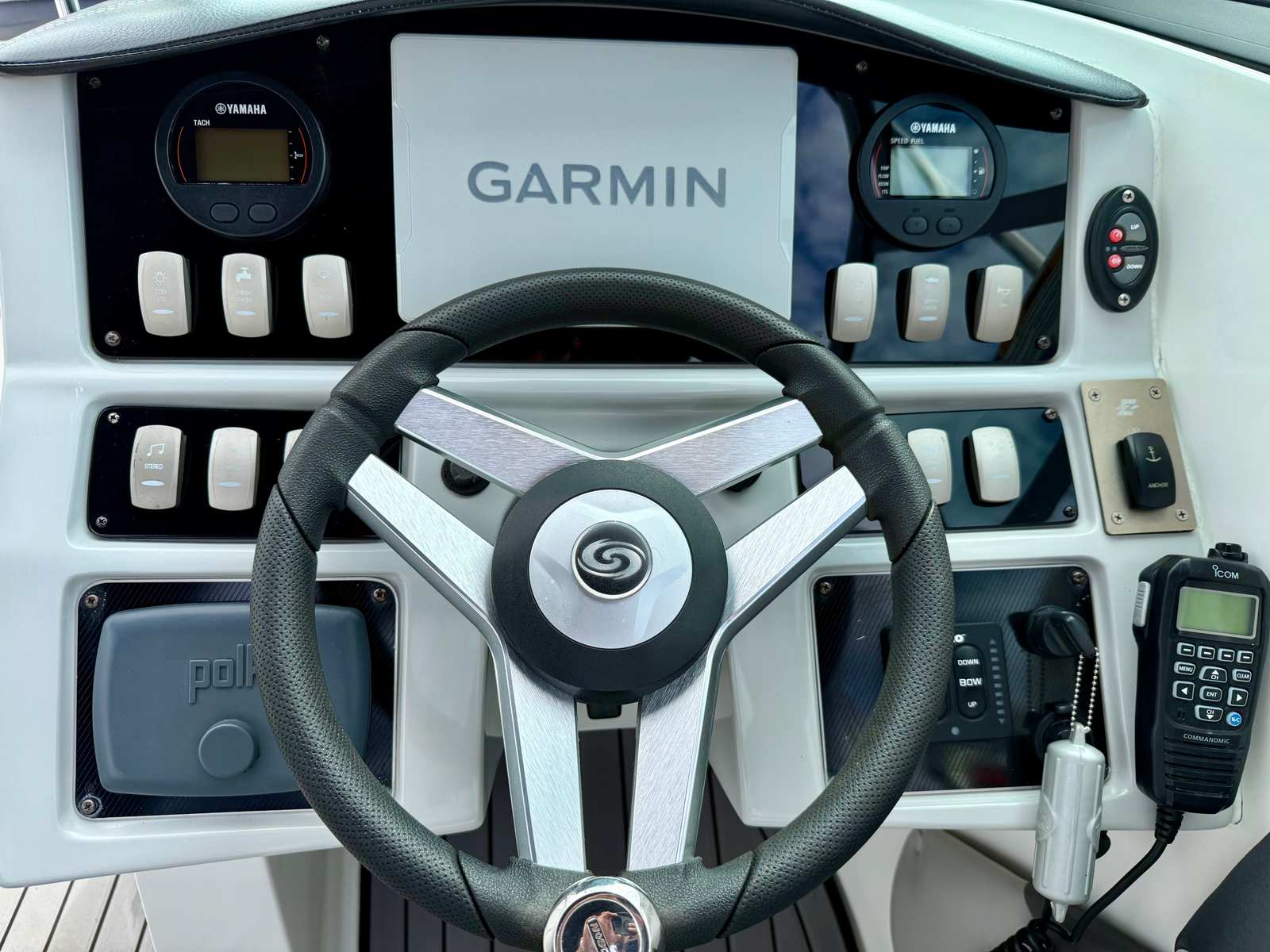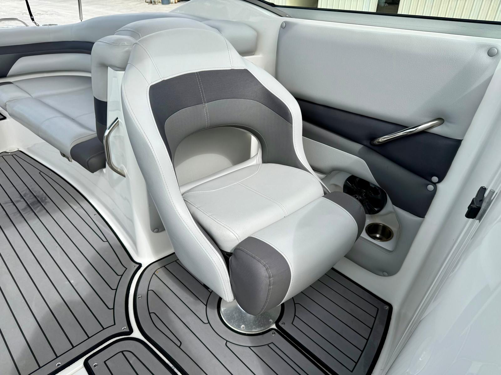 The layout of the 2690SD is built around spacious bow-to-stern seating, ensuring there’s plenty of room for family and friends to relax comfortably. Plush seating throughout the cockpit and bow creates an inviting atmosphere whether you’re entertaining at anchor or enjoying a sunset cruise. The Fusion stereo system provides quality sound, setting the tone for every outing, while the Power-Pole adds convenience for shallow water anchoring, making sandbar stops and waterfront dining effortless.