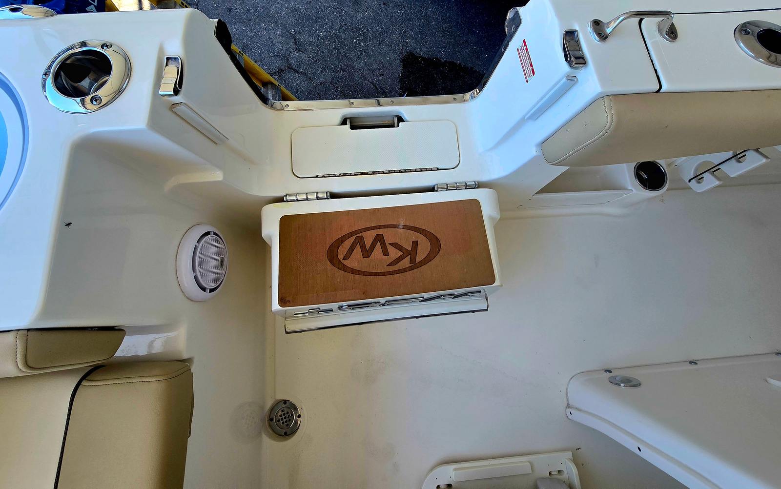 This very clean 2020 KeyWest 263 FS has many amenities such as side step dive door with an integrated ladder, forward seating with removable backrest in a full width rear bench seat, very large dual live wells located in the stern. Also has dual large in floor fish boxes. This is powered by twin Yamaha 200s with about 110 hours.