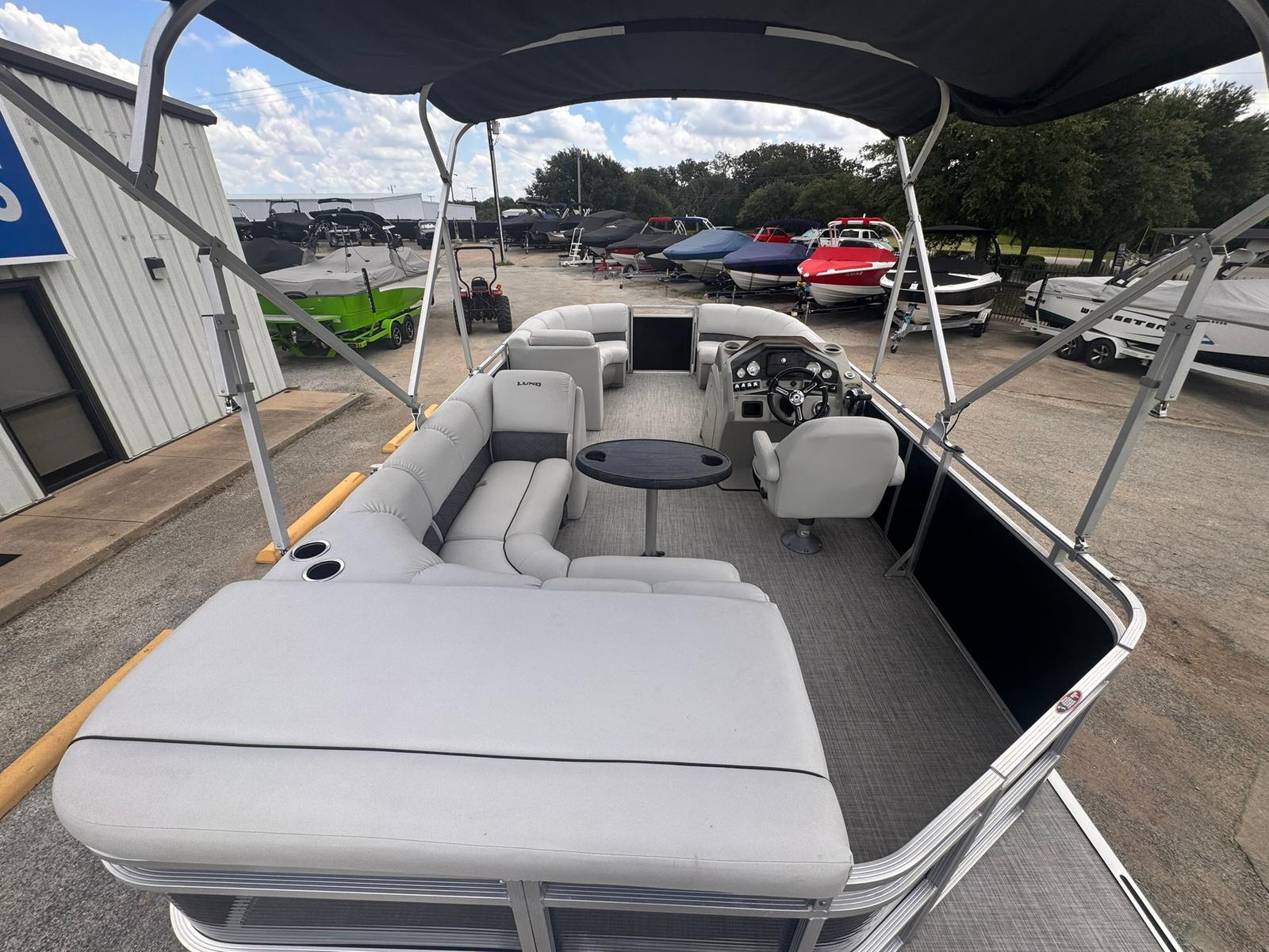 Powered by a Mercury 115 HP FourStroke with a stainless steel prop, and finished with SeaGrass-style flooring and comfort upgrades throughout, this pontoon is ready for the water.