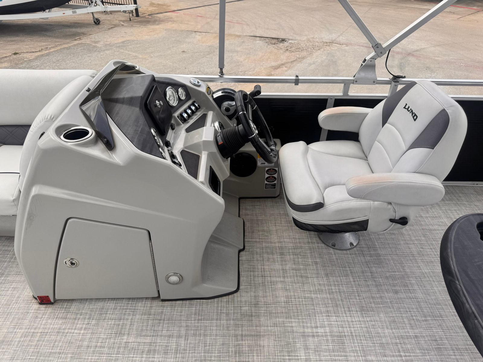 The Lund ZLX200 LC is as practical as it is fun. Its generous storage options allow you to bring along everything you need for a day of adventure, from fishing gear to picnic supplies. The pontoon’s manageable size makes docking and maneuvering a breeze, even for less experienced boaters. Fuel efficiency is another key advantage, thanks to the single 115 HP engine, allowing you to spend more time on the water and less time at the pump. Whether you’re exploring new waterways or returning to your favorite lake, this Lund boat for sale offers the convenience and reliability you need for worry-free boating.