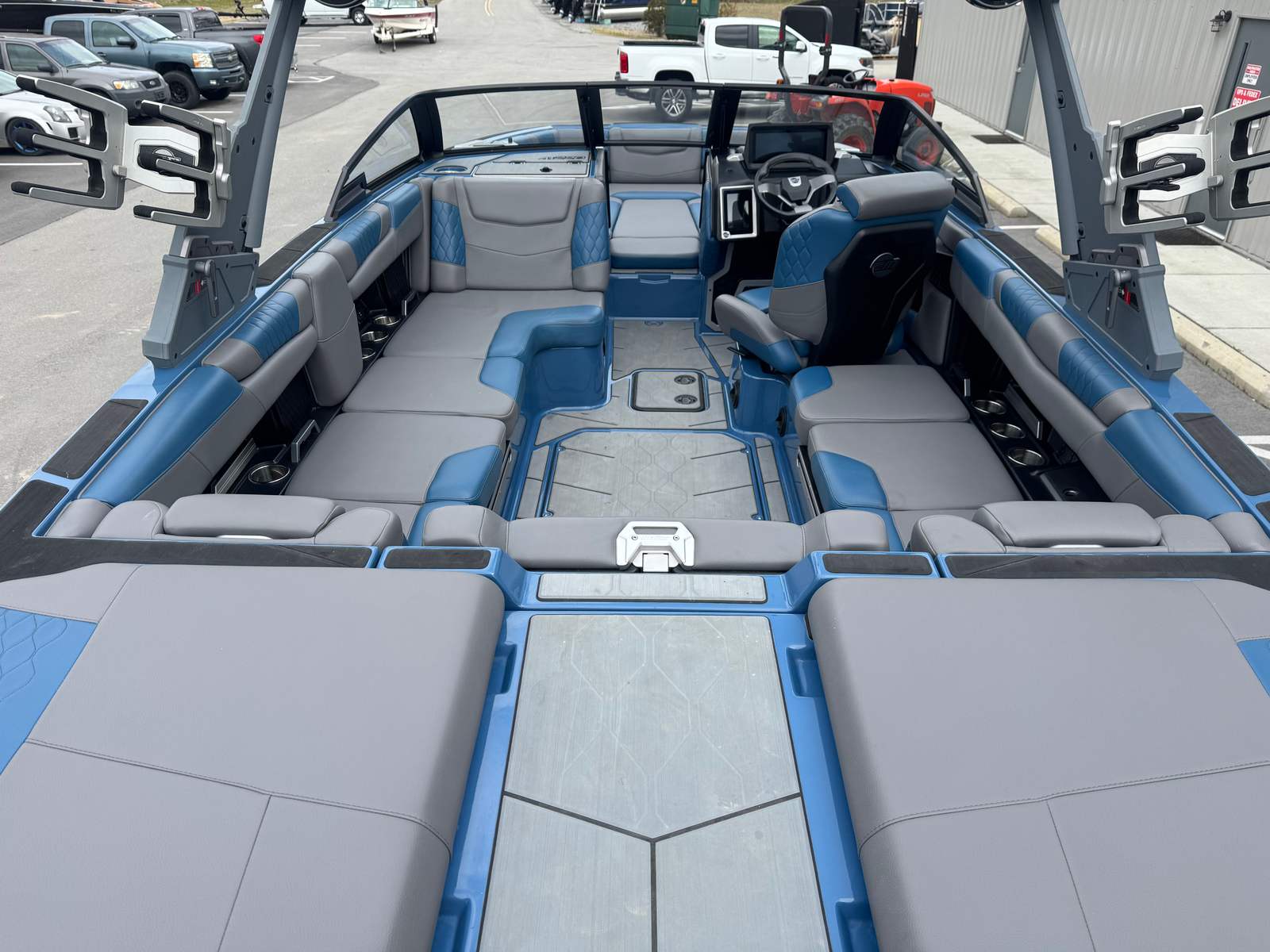 The Malibu M-Series M220 is engineered with features that cater to both serious athletes and those seeking leisurely days on the lake. Its spacious 22.42-foot layout provides ample room for friends and family, making it ideal for social gatherings and group outings. The boat’s hull design is optimized for creating the perfect wake, ensuring that every ride is smooth and enjoyable, whether you’re wakeboarding, waterskiing, or simply cruising.The M220’s advanced construction and attention to detail are evident throughout, from its ergonomic seating arrangements to its intuitive helm controls. Every aspect of this Malibu boat for sale is designed to enhance your time on the water, offering comfort, convenience, and style in equal measure.