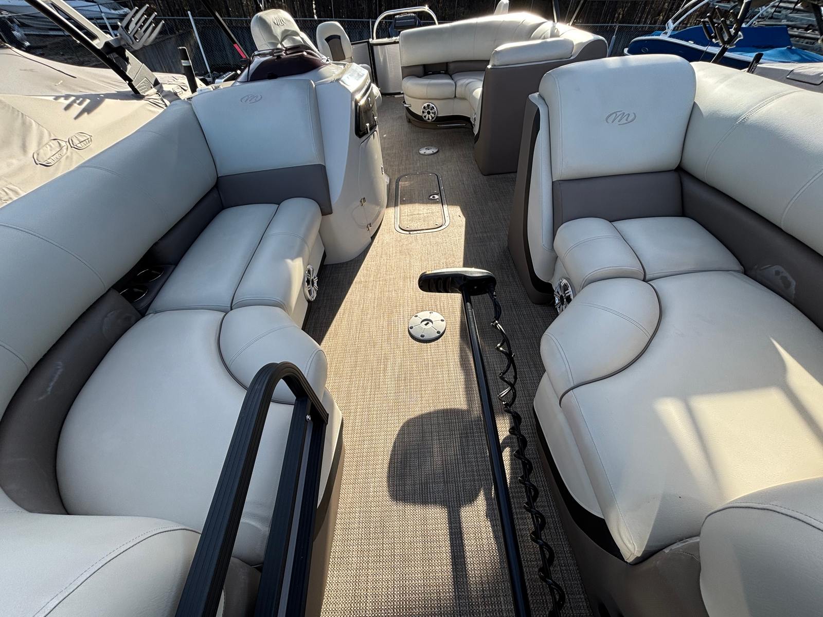 THIS 2020 MANITOU OASIS ANGLER 220 SHP WITH ONLY 95 HOURS ON THE 250 HP MERCURY PRO XS FOUR STROKE. FULL ENGINE SERVICE AND INSPECTION JUST COMPLETED.