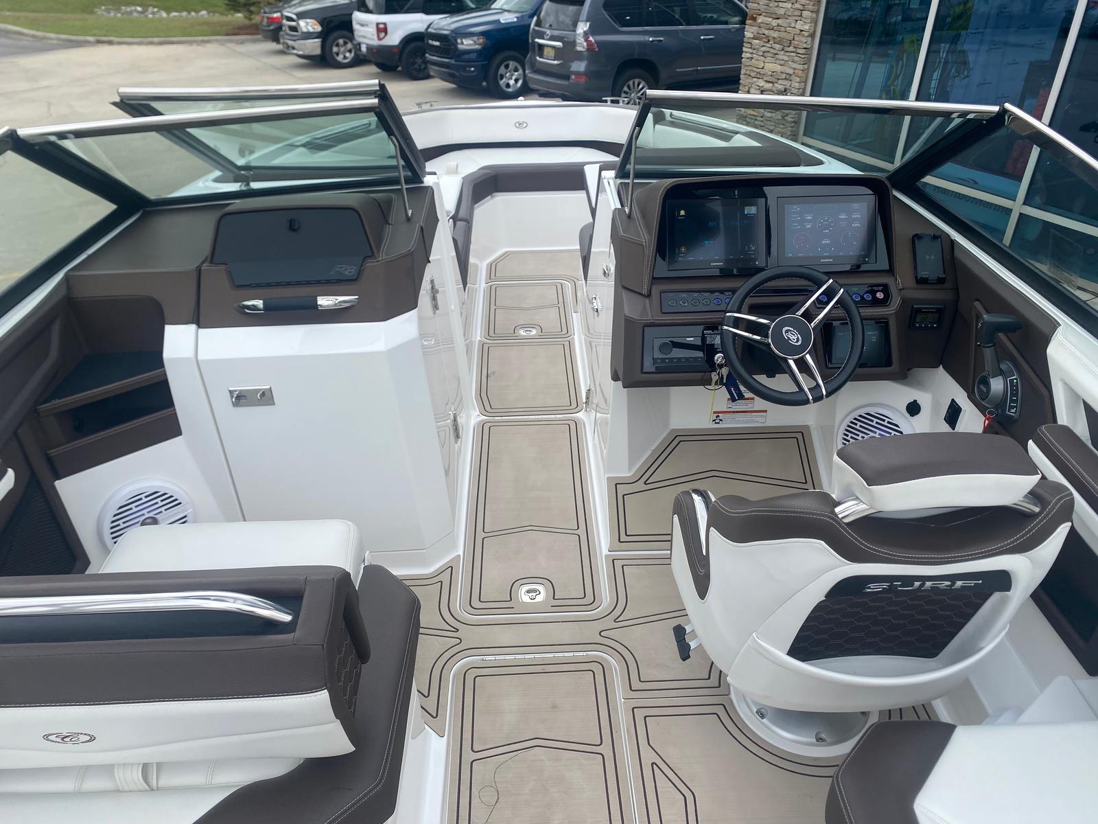 This Cobalt R8 Surf bowrider boat for sale is packed with features designed to enhance your boating experience. The spacious bowrider layout provides ample seating for family and friends, making it perfect for social gatherings and group outings. The ergonomic design ensures comfort for all passengers, while the high-quality materials and finishes reflect Cobalt’s commitment to luxury and durability. The boat’s 27.1-foot length offers plenty of room for relaxation, sunbathing, or enjoying a meal on the water.Special features of the 2022 Cobalt R8 Surf include a surf system that allows you to create the perfect wake for surfing, wakeboarding, or tubing. This innovative technology makes the R8 Surf a top choice for water sports enthusiasts who want to maximize their fun on the water. The intuitive controls and advanced systems make it easy to customize your ride, ensuring that every outing is tailored to your preferences.