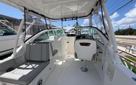 Practical UsesBeyond its luxurious features, the Pursuit DC 246 is engineered for practicality and ease of ownership. The efficient single-engine setup simplifies maintenance and enhances fuel economy, allowing you to spend more time enjoying the water and less time at the pump. The boat's manageable length makes docking and storage straightforward, whether you are keeping it at a marina or trailering it to new destinations.The Black Hardtop Aft Curtain provides protection from sun and rain, extending your boating season and ensuring comfort in changing weather conditions. The upgraded electric freshwater head and holding tank add convenience for longer trips, while the windshield wiper with freshwater sprayer keeps your view clear in all conditions. With ample storage throughout the boat, you can easily stow gear, water toys, and supplies for a full day of fun.